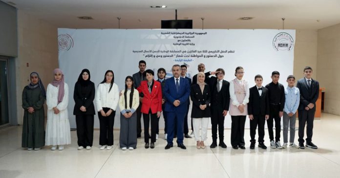 Placée sous la supervision de la présidente de la Cour constitutionnelle, Leila Aslaoui, cette manifestation s’inscrit dans une démarche visant à promouvoir la culture constitutionnelle et à l’ancrer durablement au sein de la société, en particulier auprès des jeunes générations. Destinée aux élèves des cycles moyen et secondaire, cette quatrième édition reflète l’intérêt constant porté à la sensibilisation des jeunes aux principes fondamentaux de la Constitution. Elle vise à former des citoyens conscients de leurs droits, mais également de leurs devoirs envers la société et la Nation. Dans son allocution, Mme Aslaoui a souligné que l’éducation et la transmission des valeurs de responsabilité relèvent d’un engagement collectif. Elle a rappelé que la Cour constitutionnelle, en partenariat avec le ministère de l’Éducation nationale, poursuit l’organisation de ce concours dans le but de renforcer la culture constitutionnelle chez les jeunes et de consolider leur attachement aux valeurs nationales. Cette initiative ambitionne également d’encourager les élèves à s’approprier les valeurs civilisationnelles de la nation et à renforcer leur identité nationale, tout en développant leur culture juridique et leur sens civique. Dans cette optique, la présidente de la Cour a annoncé le lancement d’un espace dédié aux enfants sur le site officiel de l’institution, baptisé « Portail constitutionnel des jeunes ». Cette plateforme permettra aux élèves de mieux découvrir la Constitution et les missions de la Cour, tout en contribuant à inculquer les valeurs de citoyenneté et le sentiment d’appartenance nationale, considérés comme essentiels pour relever les défis politiques, économiques, sociaux et culturels du pays. De son côté, le ministre de l’Éducation nationale, Mohammed Seghir Sadaoui, a qualifié ce concours de « rendez-vous éducatif d’excellence », fruit d’un partenariat solide entre son département et la Cour constitutionnelle. Il a souligné que cette initiative contribue à renforcer le rôle de l’école algérienne en tant qu’espace de construction de la conscience citoyenne et d’ancrage des valeurs fondamentales. Le ministre a ajouté que cette démarche s’inscrit pleinement dans les objectifs de l’école algérienne, qui vise à former des jeunes capables de comprendre leurs droits et devoirs, d’agir positivement dans leur environnement et de participer activement à l’édification nationale. Il a également réaffirmé l’engagement de son secteur à promouvoir les valeurs de citoyenneté à travers les programmes éducatifs et les activités menées en partenariat avec différentes institutions. Selon lui, ce concours est devenu une tradition annuelle illustrant le dynamisme du secteur éducatif et son attachement au renforcement du partenariat institutionnel au service de la formation citoyenne. Les élèves lauréats ont, pour leur part, exprimé leur satisfaction quant à l’organisation de cette compétition, qu’ils ont considérée comme une opportunité de valoriser leur créativité et d’exprimer leur attachement à la patrie. Ils ont salué cette initiative qui leur offre un espace d’expression et de développement de leurs compétences. La cérémonie s’est déroulée en présence de hautes personnalités de l’État, notamment le président du Conseil de la nation, Azouz Nasri, le président de l’Assemblée populaire nationale, Brahim Boughali, ainsi que le conseiller du président de la République chargé de l’éducation, de l’enseignement supérieur, de la formation professionnelle et de la culture, Nasreddine Bentifour. Étaient également présents la ministre de l’Environnement et de la Qualité de la vie, Kaouter Krikou, ainsi que des représentants d’institutions nationales. Cette édition a enregistré la participation d’élèves issus de 34 directions de l’Éducation à travers le pays. Seize lauréats, représentant différentes wilayas, ont été distingués dans plusieurs catégories, notamment la meilleure œuvre plastique, la meilleure affiche, la meilleure lettre et la meilleure vidéo. À travers ce concours, les institutions entendent renforcer l’ancrage des valeurs constitutionnelles et citoyennes chez les jeunes, en faisant de l’école un levier essentiel de formation civique et de consolidation de l’identité nationale.