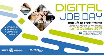 Des dizaines de jeunes issus d’établissements de formation  professionnelle, d’étudiants, de  stagiaires et de chômeurs, se sont rués,  dès l’ouverture du Salon, vers la quarantaine d’entreprises  multisectorielles, de startups et de banques, ayant pris part à cette  manifestation à la recherche de tous types de profils. Initié par l’Agence nationale de promotion et de développement des parcs  technologiques (ANPT), « le Digital Job Day ambitionne de devenir l’espace  où les jeunes pourront prendre connaissance des différentes offres d’emploi  dans le domaine des technologies de l’information, de la communication et  du numérique », a indiqué  M. Abdelhakim Bensaoula, directeur de  l’ANPT. Il a relevé, que contrairement à la première édition, « plus de 5.000  personnes, à la recherche d’opportunités d’emploi, ont exprimé, en ligne,  leur intention de participer à cet évènement, qui s’inscrit dans le cadre  des activités de son agence visant au développement des compétences  nationales dans le domaine du numérique ». Le Digital Job Day permettra aux demandeurs d’emplois de rencontrer les  employeurs potentiels et de s’enquérir des besoins du marché afin de mieux  s’y préparer et idéalement saisir une opportunité d’embauche, a-t-on  indiqué auprès de la startup NetBeOpen Prime, co-organisateur de  l’événement Un riche programme d’activités a accompagné le salon avec des coachings  offerts à titre gracieux au public, ainsi qu’une série de conférences et  ateliers sur diverses thématiques, dont « Les services digitaux et  techniques de recherche à l’emploi », « Marketing et communication Digital »,  « Introduction aux métiers de l’internet des objets » et « Le rôle des  responsables des ressources humaines dans la transformation digitale des  entreprises ». La première édition de 2018 a accueilli une quarantaine d’entreprises,  organisé pas moins de 90 coachings et ateliers et plus de 600 CV ont été  déposés au terme de la journée.