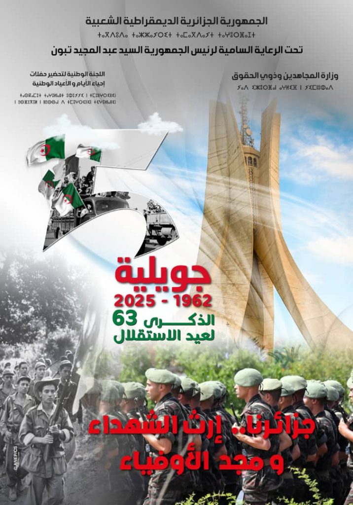 Dans ce cadre, la Commission nationale chargée de la préparation des festivités de célébration des journées et des fêtes nationales, présidée par le ministre des Moudjahidine et des Ayants-droit, M. Laïd Rebiga, a élaboré un programme multisectoriel sous le thème « Notre Algérie, le legs des chouhada et la gloire des fidèles », sous le haut patronage du président de la République, M. Abdelmadjid Tebboune.
