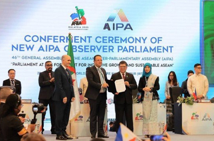 L’Algérie a officiellement rejoint l’Assemblée interparlementaire de l’Association des nations de l’Asie du Sud-Est (AIPA), en tant qu’unique membre observateur, ce qui constitue une importante réalisation pour la diplomatie parlementaire, s’inscrivant dans la dynamique de la diplomatie algérienne, sous l’impulsion du président de la République, M. Abdelmadjid Tebboune, indique un communiqué de l’Assemblée populaire nationale (APN).