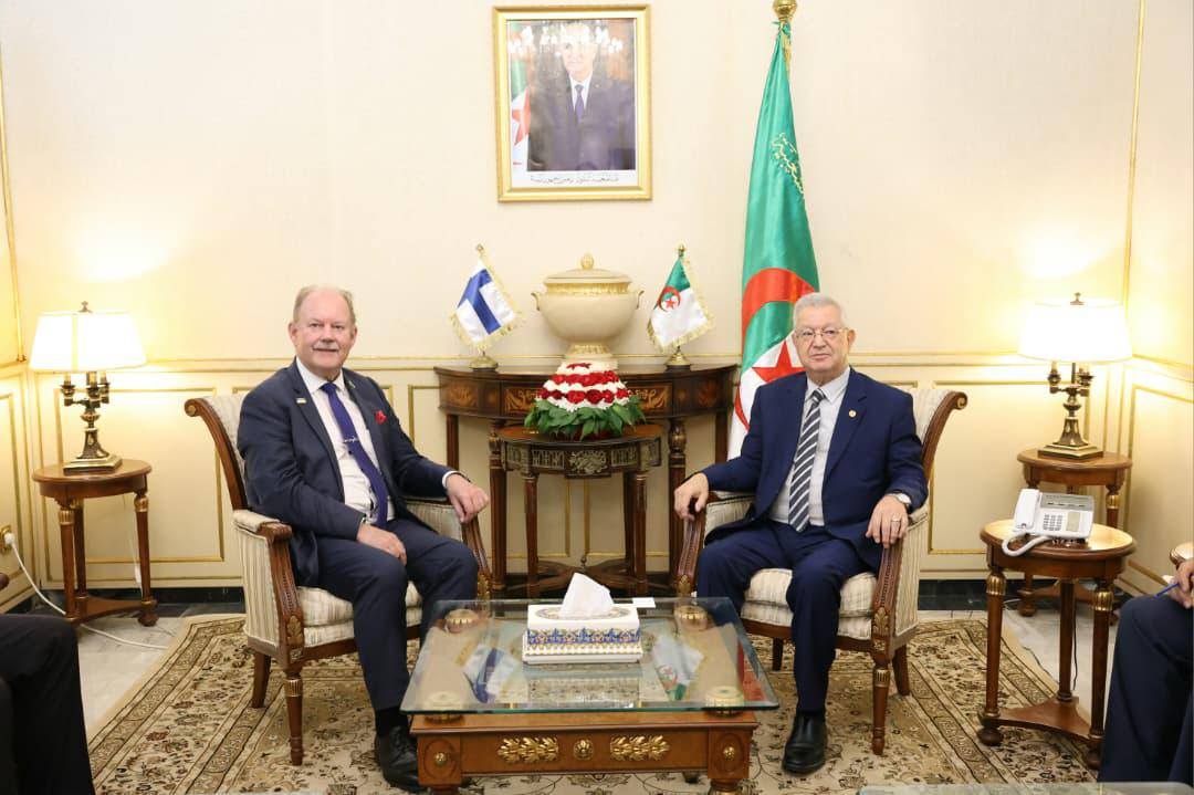 Cette rencontre a constitué « une occasion d’évoquer les relations d’amitié et de coopération unissant l’Algérie et la Finlande, ainsi que les moyens de les hisser vers des perspectives plus larges, en conformité avec la qualité du dialogue politique existant entre les deux pays » Dans ce contexte, M. Nasri a salué la qualité des relations bilatérales qui s’étendent sur plus de six décennies, soulignant l' »importance de promouvoir les échanges et le dialogue entre les milieux d’affaires des deux pays en vue de renforcer le niveau des échanges commerciaux, et ce, à la faveur de la politique clairvoyante et prospective du président de la République, M. Abdelmadjid Tebboune, qui a permis à l’Algérie d’effectuer un saut qualitatif vers un développement durable, à travers la révision et l’adoption de nouvelles lois encadrant l’activité économique, telles que les lois sur l’investissement et les activités minières, offrant ainsi des opportunités et des avantages attractifs ». Les deux parties ont également abordé les développements récents aux niveaux régional et international, note le communiqué, précisant que M. Nasri a réaffirmé « les principes fondamentaux de la diplomatie algérienne, dirigée par le président de la République, basée sur le respect de la souveraineté des Etats et des peuples, la résolution pacifique des conflits et la promotion de la paix comme fondement du développement », tout en insistant sur le droit des peuples à l’autodétermination. A cette occasion, le président du Conseil de la nation a dénoncé « les crimes de guerre perpétrés par l’entité sioniste à l’encontre du peuple palestinien, notamment les agressions génocidaires, les déplacements forcés et la politique de famine », réitérant aussi « la nécessité d’accorder au peuple sahraoui son droit à l’autodétermination, conformément à la résolution 1514 des Nations-Unies ». De son côté, l’ambassadeur de Finlande en Algérie, a salué « les avancées enregistrées par l’Algérie au cours des cinq dernières années », exprimant l’intérêt de son pays à tirer profit du climat des affaires et des opportunités d’investissement offertes dans divers secteurs. Il a exprimé également la volonté de son pays de donner « une nouvelle impulsion aux relations bilatérales, notamment à travers l’élargissement de leur coopération dans des différents domaines tels que l’industrie, l’énergie et l’agriculture, en y associant le transfert de technologie et le partage du savoir-faire ». Il a en outre félicité l’Algérie pour la réussite de la 4ème édition de la Foire du commerce intra-africain (IATF 2025), qu’elle a abritée dernièrement. Sur le plan international, M. Hyyvonen a affirmé que son pays « partage les mêmes vues que l’Algérie sur de nombreuses questions internationales », soulignant que « la Finlande plaide résolument pour des solutions pacifiques aux conflits dans le monde, dans le respect du droit international et de la légalité internationale ». Il a également réitéré l' »engagement de son pays en faveur de la solution à deux Etats et du soutien aux droits légitimes du peuple palestinien ». En outre, les deux parties ont examiné l’état des relations parlementaires et les moyens de les hisser à un niveau supérieur, réaffirmant leur conviction quant à l’importance du rôle des Parlements et des parlementaires dans le renforcement des relations bilatérales dans tous les domaines.