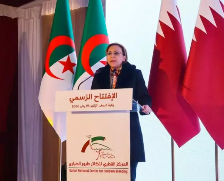 La ministre de l’Environnement, Kawther Krikou, a procédé à l’ouverture du Centre qatari de reproduction de l’outarde. La ministre de l’Environnement et de la Qualité de la vie, Kawther Krikou, a procédé lundi dans la wilaya d’El Bayadh, aux côtés du ministre de l’Environnement et du Changement climatique de l’Etat du Qatar Abdullah bin Abdulaziz bin Turki Al-Subaie, à l’ouverture officielle du Centre qatari de reproduction de l’outarde. Ce centre, inauguré en présence du wali de la wilaya d’El Bayadh, du directeur général des Forêts et des autorités locales, vise à la préservation de l’outarde, classée espèce protégée, a précisé un communiqué du ministère. La préservation de cette espèce d’oiseaux se fera à travers des programmes scientifiques spécialisés dans la reproduction et la réintroduction, contribuant ainsi à la protection de la biodiversité et au soutien des efforts de développement durable, dans le cadre du renforcement de la coopération environnementale entre l’Algérie et le Qatar.