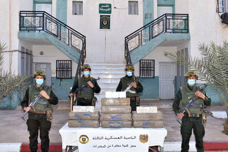 Dans le cadre de la lutte contre la criminalité organisée et «en continuité des efforts intenses visant à contrecarrer le fléau du narcotrafic dans notre pays», des détachements combinés de l’ANP, en coordination avec les différents services de sécurité au niveau des territoires des 2ème et 3ème Régions militaires, «ont arrêté 13 narcotrafiquants et ont déjoué des tentatives d’introduction de quantités de drogues, à travers les frontières avec le Maroc, s’élevant à 23 quintaux et 15 kilogrammes de kif traité». «Vingt (20) autres narcotrafiquants ont été arrêtés et 148 kilogrammes de la même substance et 166.857 comprimés psychotropes ont été saisis lors de diverses opérations exécutées à travers les autres Régions militaires». Par ailleurs, dans le cadre de la lutte antiterroriste, des détachements de l’ANP «ont arrêté cinq (05) éléments de soutien aux groupes terroristes dans des opérations distinctes à travers le territoire national, tandis qu’un autre détachement de l’ANP a découvert, lors d’une patrouille de reconnaissance à Bordj Badji Mokhtar (6ème RM), une cache contenant 7 systèmes de contrôle de détonation à distance, une grenade, 9 chaines de munitions, des capsules de détonation, en plus de 285 balles de différents calibres. De même, 10 casemates pour terroristes et 2 bombes de confection artisanale ont été découvertes et détruites lors d’une opération de recherche et de fouille à Tizi-Ouzou et Boumerdès». D’autre part, des détachements de l’ANP «ont intercepté, à Tamanrasset, In Guezzam, Bordj Badji Mokhtar, Djanet et Tindouf, 91 individus et saisi 19 véhicules, 151 groupes électrogènes, 105 marteaux piqueurs, 13 détecteurs de métaux, des quantités d’explosifs, des outils de détonation et d’autres équipements utilisés dans des opérations d’orpaillage illicite, ainsi que 62 tonnes de mélange d’or brut et de pierres, alors que 7 fusils de chasse, 3 pistolets automatiques, 105,5 tonnes de denrées alimentaires destinées à la contrebande et 22.120 unités de tabacs ont été saisis à In Guezzam, Ouargla, El-Oued, Biskra, In Amenas, Mila et M’sila». Dans le même contexte, les Garde-frontières «ont déjoué des tentatives de contrebande de quantités de carburants s’élevant à 7.149 litres à Tébessa, El-Tarf et Souk Ahras, alors que 239 immigrants clandestins de différentes nationalités ont été appréhendés à Djanet, Tlemcen, Tindouf et Béchar».