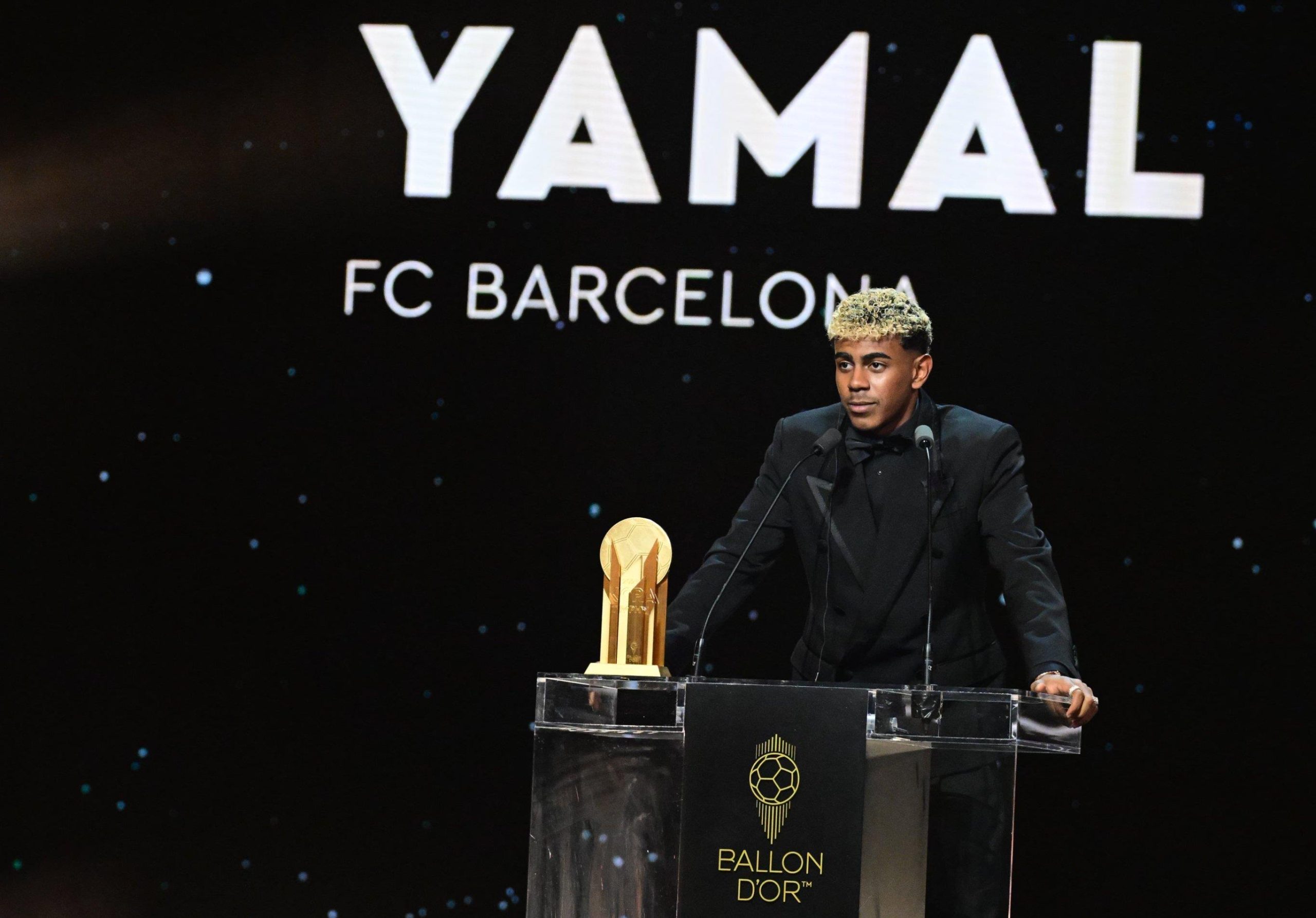 L’attaquant espagnol du FC Barcelone Lamine Yamal, en lice pour le Ballon d’Or, a remporté lundi le trophée Raymond Kopa de meilleur jeune de la saison 2024-25, devant le Parisien Désiré Doué. Yamal, 18 ans, est venu récupérer sa récompense sur scène au Théâtre du Châtelet, en plein coeur de Paris, des mains du champion du monde Raphaël Varane. « Merci, j’espère que je remporterai davantage de prix » dans le futur, a-t-il dit au micro. Lamine Yamal n’a pas encore fait une croix sur le Ballon d’Or, décerné en fin de soirée, puisque le jury est différent. Yamal a grandement contribué à la très bonne saison barcelonaise, inscrivant 18 buts et réussissant 25 passes décisives toutes compétitions confondues, et remportant avec le club la Liga et la Coupe du Roi.