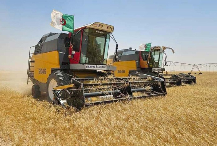 Lancée dans une exploitation agricole de l’ entreprise publique économique ‘’Global Agrifood’’ (filiale du holding Madar), située à 180 km au Sud de Hassi-Messoud, cette campagne cible une superficie emblavée en blé dur de 870 ha, avec un rendement moyen estimé entre 50 et 55 qx/ha, selon les explications fournies à la délégation ministérielle.Cette exploitation, qui s’étend sur une superficie totale de 2.000 ha, dont 1.050 ha sous pivots, emploie 54 agriculteurs et prévoit l’introduction prochaine de nouvelles variétés de céréales, notamment le blé, l’orge et le maïs, a précisé le directeur des activités agricoles à Global Agrifood, Benadji Amirouche.Opérationnel depuis 2022, cet investissement dispose actuellement de 35 pivots assurant l’irrigation d’une superficie de 30 ha chacun.Le ministre a, à cette occasion, souligné que tels investissements s’inscrivent dans le développement de l’agronomie saharienne, appelée à devenir un modèle d’investissement agricole dans le Grand Sud du pays, conformément aux orientations du président de la République, M. Abdelmadjid Tebboune, en matière de mise en œuvre d’un plan national pour les cultures stratégiques, dont les céréales, les oléagineux et le maïs-grain.S’agissant de l’électrification agricole, M. Cherfa a indiqué qu’une enveloppe conséquente a été allouée pour l’exercice 2025 afin de raccorder les périmètres agricoles (exploités ou en cours de réalisation) au réseau d’électricité.Dans le même sillage, il annoncé que la wilaya d’Ouargla a bénéficié d’un montant de 3 milliards de DA pour l’électrification agricole.Par ailleurs, le ministre a insisté sur l’importance d’accorder la priorité à l’extension des surfaces dédiées aux cultures oléagineuses, notamment le tournesol et le maïs-grain.Au cours de sa tournée, M. Cherfa a lancé la campagne moisson-battage au niveau de l’exploitation agricole privée ‘’Bennou Messaoud’’.Cette dernière, équipée de 49 pivots, cultive diverses productions, dont 1.330 ha de blé dur, 80 ha de maïs-grain, 240 ha de tournesol et 90 ha de colza.Selon les données de la Direction locale des services agricoles (DSA), une récolte prévisionnelle de 371.107 qx de céréales, toutes variétés confondues, est attendue dans la wilaya d’Ouargla pour l’actuelle saison (2024-20En outre, le ministre a lancé les travaux d’ouverture de pistes agricoles sur 200 km à travers les périmètres spécialisés en cultures stratégiques, dont 47 km pour ceux de Gassi-Touil.Sur le même site, il s’est informé sur le projet de réalisation de deux centres de proximité de stockage des céréales.M. Cherfa poursuit sa visite dans la wilaya, où il doit inspecter les chantiers de sept autres centres de stockage similaires dans la commune deHassi-Benabdallah (Est d’Ouargla), avant de poser la première pierre d’un silo d’une capacité d’un (1) million de qx.Il présidera également une cérémonie de lancement du raccordement de périmètres agricoles au réseau d’électricité dans la commune de N’goussa (Ouest d’Ouargla).Le ministre de l’Agriculture, du Développement rural et de la Pêche clôturera sa visite de travail par l’inspection d’une fabrique de production d’aliments pour poissons d’eau douce, dans la ferme aquacole d’élevage de crevettes réalisée dans le cadre du partenariat algéro-coréen à Hassi-Benabdallah.