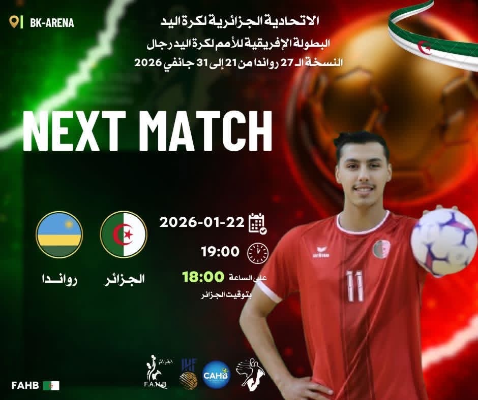 La sélection algérienne de handball messieurs s’est inclinée face à son homologue nigériane sur le score de 25 à 23 (mi-temps : 16-13), pour le compte de la première journée (Gr. A) de la 27e édition du Championnat d’Afrique des nations (CAN-2026), disputée hier à Kigali au Rwanda.Versée dans le groupe A de la 27e édition du CAN (21-31 janvier), l’Algérie disputera aujourd’hui son deuxième match face au Rwanda (18h00), avant de clôturer le premier tour face à la Zambie, samedi (12h00).Dans l’autre match du groupe A, le Rwanda, pays hôte, affrontera la Zambie à partir de 19h00 (heure algérienne). Le groupe B est composé de l’Egypte, de l’Angola, du Gabon et de l’Ouganda, alors que le groupe C comprend la Tunisie, la Guinée, le Cameroun et le Kenya. Et dans le groupe D figurent le Cap-Vert, la Maroc, le Congo et le Bénin. Les deux premiers de chaque poule accèdent au tour principal de la compétition composé de deux groupes de quatre équipes. La compétition offrira des tickets qualificatifs au prochain Mondial, prévu en 2027 en Allemagne. Une échéance que les « Verts » ambitionnent de retrouver après avoir disputé la finale du CAN-2024 au Caire, perdue face à l’Egypte.