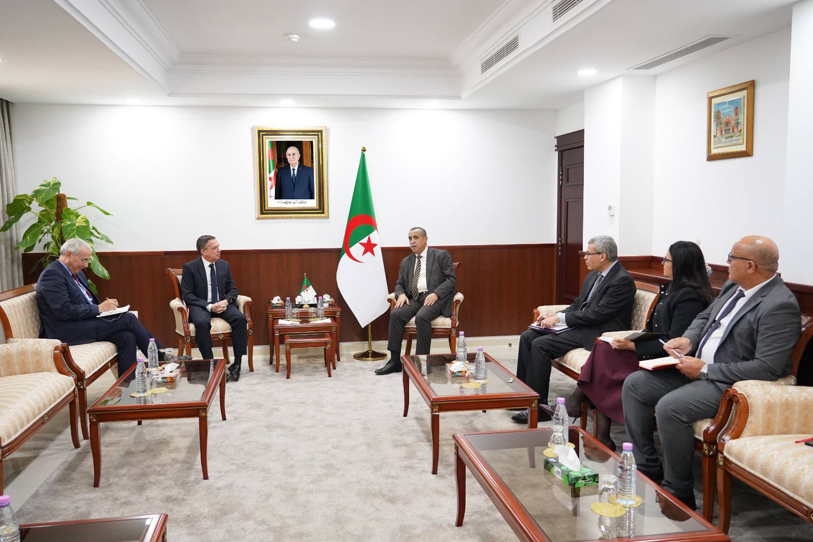 La rencontre, tenue au siège du département ministériel, s’est déroulée en présence du président du Conseil d’administration du groupe, Mehdi Bendimerad, ainsi que de son directeur général, Boukhalfa Yaissi. Les échanges ont porté sur les principales questions liées au secteur, ainsi que sur les perspectives de consolidation de la coopération entre les différents intervenants dans les domaines de l’énergie et des énergies renouvelables. À cette occasion, Mourad Adjal a présenté la vision stratégique du secteur en matière de transition énergétique, insistant sur le caractère collectif de ce chantier. Il a souligné que la réussite de ce processus repose sur l’implication de l’ensemble des acteurs, en particulier les industriels, appelés à jouer un rôle central dans le soutien et le développement des énergies renouvelables. Le ministre a également fait le point sur l’état d’avancement des projets engagés, évoquant notamment la mise en œuvre du programme de 3.200 mégawatts d’énergie solaire. Il a, par ailleurs, mis en avant les efforts déployés pour lever le gel sur plusieurs projets d’envergure, notamment les projets hors réseau (off grid), ainsi que les initiatives liées à l’énergie nucléaire. Dans ce contexte, M. Adjal a insisté sur la ضرورة pour l’ensemble des acteurs de contribuer activement à la dynamique de développement des énergies renouvelables, affirmant que les portes du ministère restent ouvertes à toutes les propositions sérieuses et crédibles susceptibles d’accompagner cette transition. De son côté, Mehdi Bendimerad a salué la dynamique que connaît actuellement le secteur de l’énergie et des énergies renouvelables, en particulier dans le domaine de l’électricité. Il a également mis en avant les résultats enregistrés dans le développement des énergies propres, réaffirmant le soutien du GECA à la vision et aux orientations stratégiques du ministère dans ses différents axes.