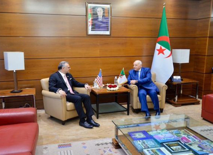 À cette occasion, un entretien en tête-à-tête a eu lieu entre les deux responsables, suivi de discussions élargies réunissant les délégations des deux pays. Ces échanges ont permis de passer en revue les différents volets des relations algéro-américaines et d’examiner les perspectives de leur renforcement à des niveaux supérieurs de coopération. Les deux parties se sont félicitées de la qualité du dialogue stratégique en cours entre Alger et Washington, saluant la dynamique positive que connaît le partenariat bilatéral dans plusieurs secteurs clés d’intérêt commun, notamment la défense, l’énergie, l’agriculture, ainsi que l’enseignement supérieur et la recherche scientifique. Par ailleurs, un accent particulier a été mis sur le niveau de coordination entre les deux pays au sein du Conseil de sécurité des Nations Unies. Les discussions ont également porté sur les grandes questions d’actualité en Afrique, avec un échange approfondi de vues sur les situations en Libye, au Sahara occidental, dans la région sahélo-saharienne, ainsi que dans les Grands Lacs et le reste du continent africain.