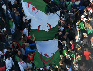 Le drapeau flotte entre les mains des manifestants. Il est mobile. Il est proche des personnes qui n’hésitent pas pour certains d’entre eux à le sacraliser, à lui donner une résonance affective. «  C’est notre drapeau. Nous y tenons énormément. Il nous revient d’en prendre soin », affirme une femme. Il est de l’ordre du partage dans l’espace public, contrairement à celui fixé en haut de l’immeuble d’une institution étatique ou politique, éloigné de la population. Ce drapeau-là, celui du pouvoir, n’a pas la même signification. Il ne leur a jamais appartenu en raison du mépris institutionnalisé  au cœur du mode de fonctionnement des institutions. Dans une très belle vidéo, il est possible d’observer un enfant, à peine âgé de 10 ans, enveloppé du drapeau national, soulevant une pancarte, où l’on peut lire : « L’Algérie m’appartient aussi ». Il devient un acteur incontournable agissant auprès des marcheur.es. Il est porté individuellement par des enfants, des personnes âgées, des femmes, des jeunes ou moins jeunes et des personnes handicapées. Il peut être enveloppé autour du corps comme une immense écharpe. Il peut être aussi porté par un groupe de jeunes composés de cinq à six personnes qui encerclent un immense drapeau rectangulaire. Le drapeau national donne vie à la marche des manifestants du vendredi, devenue depuis plus d’un mois, un rituel politique. La durée du mouvement social conduit la population qui a investi les artères du centre ville, à inventer des formes de mobilisation originales et inventives : distribution gracieuse de dattes et d’eau aux manifestants. Des jeunes bénévoles nommés les « brassards verts », donnent les premiers soins aux manifestants pris d’un malaise. La captation du drapeau national peut se lire comme un patriotisme profond producteur d’un enchantement sublime, donnant du bonheur aux personnes. Une femme d’une trentaine d’année disait : « je retrouve enfin du bonheur en portant autour de moi le drapeau ». Le drapeau ne concerne pas uniquement les marcheurs. Il suffit de relever les yeux pour se rendre compte de sa présence dans les balcons des immeubles. Il est fixé au volet de la fenêtre ou porté par des personnes admiratives qui visualisent à l’aide de leurs portables, la marche des manifestants. Enfin, ils n’hésitent pas à leur offrir du haut de leur balcon de façon fraternelle de l’eau ou des bonbons. Le drapeau national est parlant. C’est à partir du drapeau, qu’un imaginaire pertinent est déployé pour donner du sens aux manifestations. Sur une pancarte portée par un jeune au cours de la manifestation du 22 mars 2019 à Oran, il est possible de prendre connaissance de l’interprétation des 3 couleurs composant le drapeau national : « Nous sommes blancs d’espoir, vert de dégoût, rouge de colère ». Ce qui sous-tend que le port du drapeau national recouvre une dimension politique forte, une manière de dire au pouvoir qui ne veut pas encore partir, leur mécontentement mais aussi leur détermination à les « dégager ». Cette fusion entre l’appropriation du drapeau et le mot d’ordre « Dégage », semble indiquer que l’Algérie est d’abord celle du peuple. Celui-ci a décidé que le pouvoir doit partir. « Dégage » est le slogan le plus populaire, le plus récurrent scandé par les marcheurs. On peut reprendre quelques slogans qui insistent avec force sur la rupture avec le système politique : « FLN dégage », « Y en a marre de ce système  politique». Le drapeau national a été socialisé dans l’espace public de façon massive et exceptionnelle dans l’histoire de l’Algérie : les premiers jours de l’indépendance, à partir du 5 juillet 1962, à un degré moindre après la qualification de l’Algérie en coupe du monde en 2009 face à l’Égypte, et à présent avec les marches débutées le 22 février 2019, date devenue désormais historique.