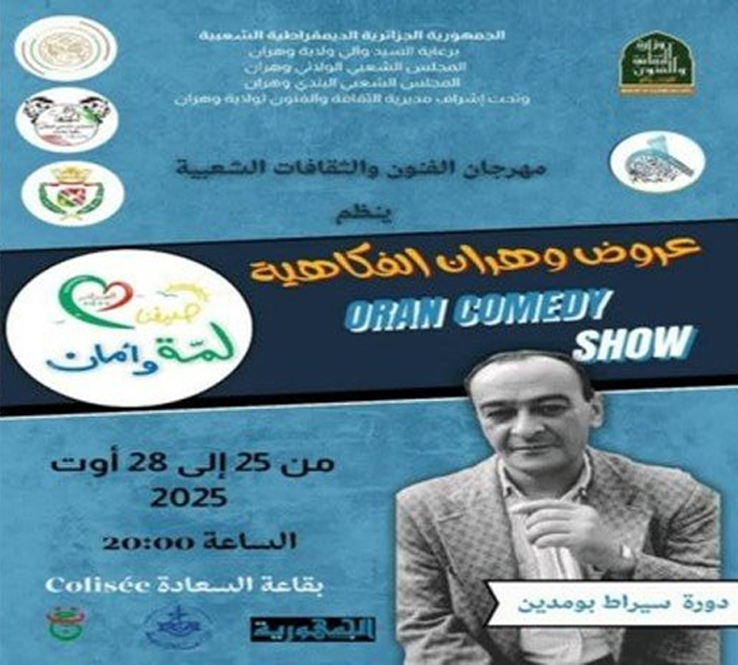 Noureddine Mekhaissi a précisé, lors d’une conférence de presse tenue en présence de la comédienne Fadhela Hachmaoui (présidente du jury) et du comédien Mohamed Mihoubi, que cette manifestation est organisée sous le patronage du wali d’Oran, Samir Chibani, à l’initiative de la direction locale de la Culture, en collaboration avec la Commissariat du Festival des arts et des cultures populaires, l’Office national de la culture et de l’information (ONCI), ainsi que l’Assemblée populaire communale. Placée sous le slogan « L’été, moment de rassemblement et de joie », cette première édition rassemblera 67 artistes issus de différentes wilayas du pays telles que Oran, Tlemcen, Sidi Bel Abbès, Mascara, Mostaganem, Relizane, El Meghair et Alger, a-t-il ajouté, précisant que l’entrée est gratuite pour les familles. L’événement proposera une série de spectacles humoristiques interprétés par plusieurs artistes comiques et comédiens, entre autres »Abdelkader secteur », Zoubir Belhor, Mohamed Khassani, Mohamed Yabdri, Imad Guedid, Hamid Chenine, Zaza, Hindou, Houari Bouabdallah. De son côté, Mohamed Mihoubi, responsable de la programmation, a souligné la volonté de raviver l’art humoristique à Oran et de favoriser les échanges entre jeunes artistes et comédiens confirmés, indiquant que des efforts sont en cours pour institutionnaliser cet événement et en faire un rendez-vous annuel. Pour sa part, la présidente du jury, Fadhela Hachmaoui, a annoncé les futures éditions seront dédiées, chacune, à la mémoire d’un artiste comique ou dramatique, en reconnaissance de leur parcours et de leurs contributions sur scène.