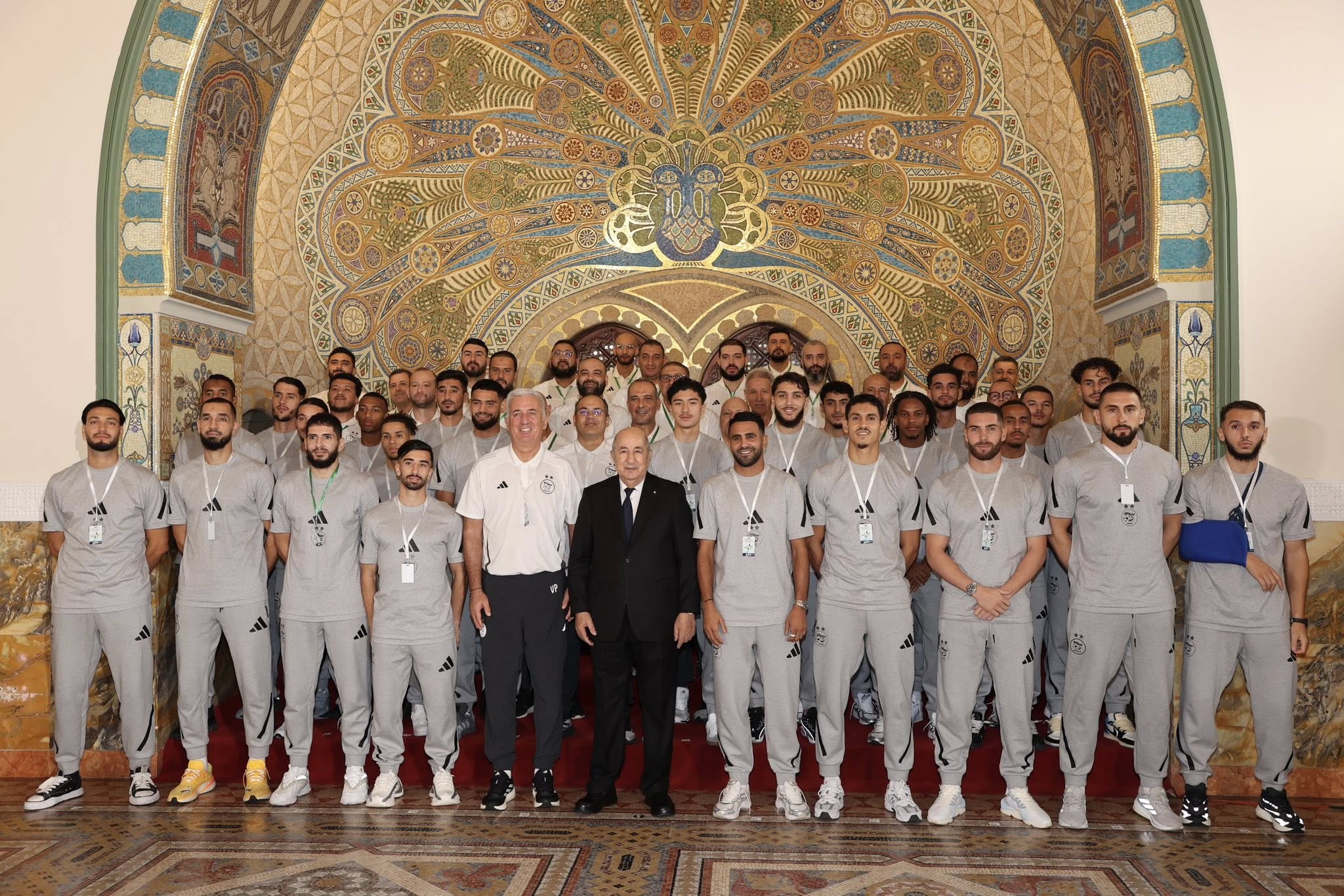 Le président de la République, M. Abdelmadjid Tebboune, a présidé, mercredi à Alger, une cérémonie en l’honneur des athlètes algériens médaillés aux Championnats du monde de para-athlétisme à New Delhi, aux Mondiaux d’athlétisme à Tokyo et au Championnat arabe de basketball au Bahreïn, ainsi que de l’équipe nationale qualifiée pour la Coupe du monde 2026. La cérémonie s’est déroulée au Palais du Peuple, en présence de hauts responsables de l’Etat, de membres du Gouvernement, de cadres supérieurs et de représentants de la communauté sportive. Dans une allocution prononcée à cette occasion, le ministre des Sports, Walid Sadi, a salué l’attachement du président de la République à accompagner et encourager les athlètes et le sport algériens, soulignant que cette cérémonie « reflète le soutien continu et constant du président de la République aux athlètes et au sport algériens, à travers la réalisation d’infrastructures sportives modernes et la promotion de la pratique sportive ». « Vous avez toujours été le premier supporter et le plus grand soutien à nos athlètes et à nos sélections, à travers l’intérêt que vous leur portez et votre suivi permanent de leurs exploits en Algérie et à l’étranger », a dit M. Sadi s’adressant au président de la République. « Guidés par vos hautes orientations, nous réitérons notre engagement à faire du sport une véritable culture de vie », a ajouté le ministre. Les athlètes algériens honorés ont, de leur côté, salué l’initiative du président de la République, y voyant une grande motivation pour donner le meilleur d’eux-mêmes lors des prochaines compétitions. L’entraîneur adjoint de la sélection nationale de football, Nabil Neghiz, s’est dit « très heureux de cette distinction du président de la République, qui est très importante pour nous et pour tous les joueurs ». « Cette distinction nous engage car le président de la République a toujours été présent pour encourager les athlètes et les inciter à redoubler d’efforts pour hisser haut l’emblème national et faire honneur à l’Algérie », a-t-il ajouté. « Nous avons suffisamment de temps pour bien préparer la Coupe d’Afrique des nations (CAN) de football et pouvoir aller le plus loin possible pour donner la meilleure image de l’Algérie et du football algérien », a-t-il poursuivi. De son côté, le défenseur de la sélection nationale, Ramy Bensebaïni, a salué l’initiative du président de la République. « C’est un grand honneur qui nous encourage à donner le meilleur lors des prochaines rencontres, notamment lors des phases finales de la CAN et de la Coupe du monde », a-t-il dit. Pour sa part, le médaillé d’argent lors de la finale du 800 mètres aux Championnats du monde d’athlétisme à Tokyo, Djamel Sedjati, a remercié le président de la République pour cette distinction qui va, a-t-il dit, l’encourager à se « surpasser lors des prochaines joutes pour faire plaisir au peuple algérien ». Le secrétaire général de la Fédération algérienne handisport (FAH), Mehdi Osmani, a, quant à lui, affirmé que cette distinction « donnera un nouvel élan à l’handisport qui permettra aux athlètes de réaliser d’autres exploits et de faire honneur à l’Algérie lors des prochaines compétitions, notamment le Championnat d’Afrique de goalBall (hommes-femmes) prévu en décembre prochain en Egypte, où nous visons le titre continental ». Le judoka paralympique Abdelkader Bouamer a, lui aussi, salué l’initiative du président de la République et son soutien constant aux athlètes, soulignant que « sous son mandat, les résultats sportifs s’améliorent progressivement ». « Je le remercie sincèrement pour cette attention, c’est un grand honneur pour nous et cela nous encourage à remporter encore plus de médailles à l’avenir », a-t-il ajouté. De son côté, le président de la Fédération algérienne de basketball (FABB), Mehdi Oucif, a salué l’initiative du président de la République. « C’est un immense honneur pour nous d’être reçus par le président de la République, qui accorde un soutien constant au sport et aux athlètes », a-t-il déclaré. « Cette distinction va inciter les jeunes et la FABB à redoubler d’efforts pour honorer le drapeau national, d’autant que le président de la République nous a assurés du soutien constant de l’Etat au sport national dans toutes ses disciplines », a-t-il affirmé. Au terme de la cérémonie, le président de la République a pris une photo-souvenir avec les athlètes distingués.