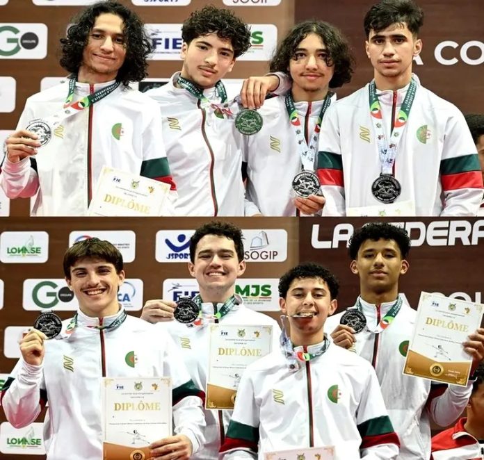 La deuxième médaille d’argent a été également décrochée par la sélection algérienne juniors garçons, composée de Ziad Abdallah Ben Abed, Islam Garef, Siliane Aoudia et Zakaria Youcef Mimoun, aux épreuves de fleuret par équipes. La médaille d’or est revenue à l’Egypte, alors que la Tunisie a remporté le bronze. De leur côté, les escrimeurs Ziad Abdallah Ben Abed et Zakaria Youcef Mimoun ont décroché la médaille de bronze aux épreuves de fleuret cadets garçons.