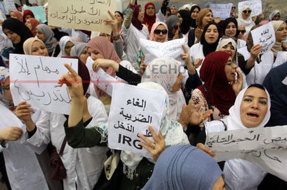Protestation dans le cycle primaire et rassemblement devant le siège du ministère de l’éducation nationale. Ph :Fateh Guidoum / PPAgency