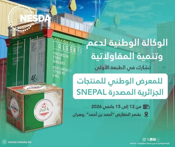 L’événement se tient au Palais des expositions « Ahmed Ben Ahmed », sur une période prolongée allant du 12 au 15 janvier 2026, et constitue une vitrine nationale dédiée à la valorisation du produit algérien sur les marchés extérieurs. La participation de la NESDA s’inscrit dans le cadre de sa stratégie visant à mettre en avant les capacités d’exportation des entreprises algériennes et à contribuer à la diversification des exportations nationales hors secteur des hydrocarbures. À cette occasion, l’agence est accompagnée d’un groupe de petites entreprises financées par la NESDA, actives dans plusieurs secteurs de production et de services, reflétant la diversité et le potentiel du tissu entrepreneurial national. À travers sa présence à la SNEPAL, la NESDA entend également mettre en lumière des expériences d’exportation réussies, tout en présentant les mécanismes d’accompagnement, d’orientation et de soutien qu’elle propose aux porteurs de projets et aux entrepreneurs souhaitant accéder aux marchés internationaux. Les visiteurs sont ainsi invités à découvrir le pavillon de l’agence, à échanger avec les représentants des entreprises exposantes et à s’informer sur les perspectives d’appui offertes aux entrepreneurs, dans un contexte marqué par la volonté des pouvoirs publics de renforcer la place du produit algérien à l’export et de soutenir une croissance économique diversifiée et durable.
