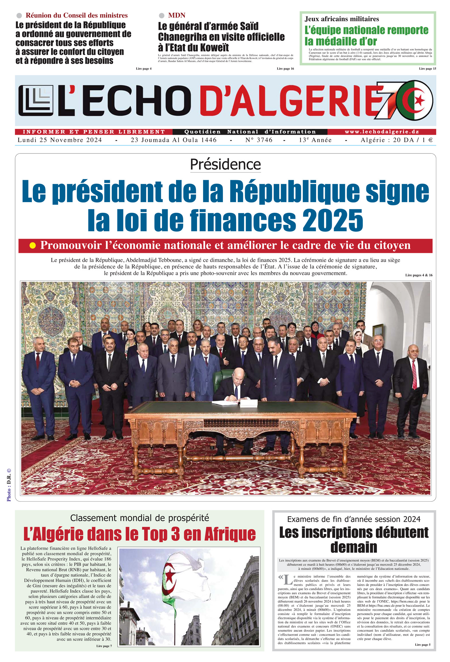L’Echo d’Algérie, Quotidien National d’Information édité par Echo Médias Algérie Sarl, venu enrichir la presse écrite, jeune par son âge certes mais en réalité c’est le prolongement d’un idéal, d’un combat, d’un rêve.