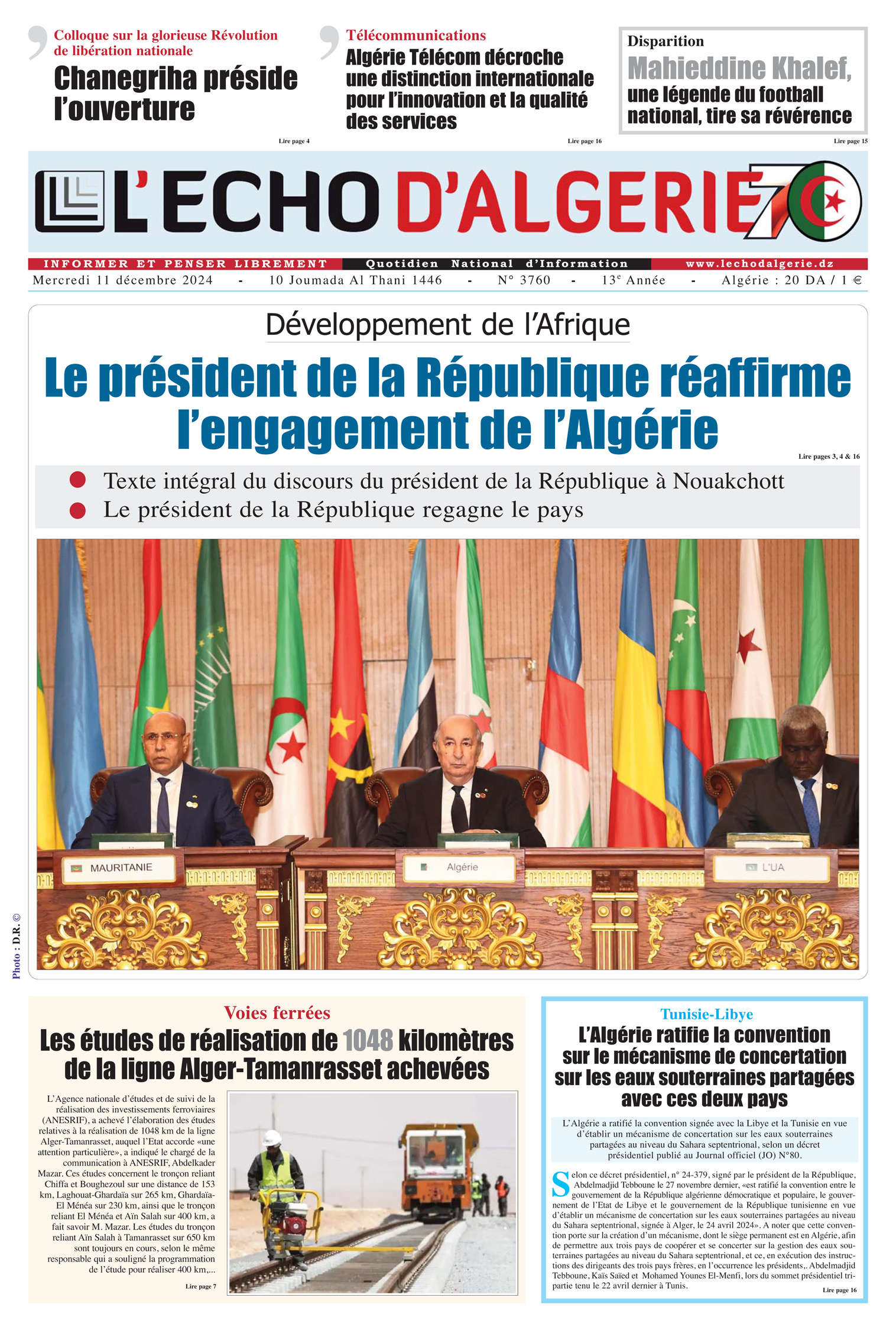 L’Echo d’Algérie, Quotidien National d’Information édité par Echo Médias Algérie Sarl, venu enrichir la presse écrite, jeune par son âge certes mais en réalité c’est le prolongement d’un idéal, d’un combat, d’un rêve.