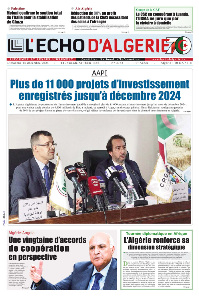 L’Echo d’Algérie, Quotidien National d’Information édité par Echo Médias Algérie Sarl, venu enrichir la presse écrite, jeune par son âge certes mais en réalité c’est le prolongement d’un idéal, d’un combat, d’un rêve.