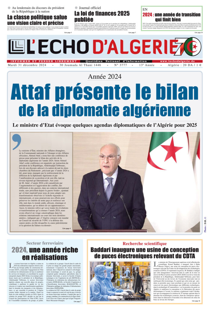 L’Echo d’Algérie, Quotidien National d’Information édité par Echo Médias Algérie Sarl, venu enrichir la presse écrite, jeune par son âge certes mais en réalité c’est le prolongement d’un idéal, d’un combat, d’un rêve.