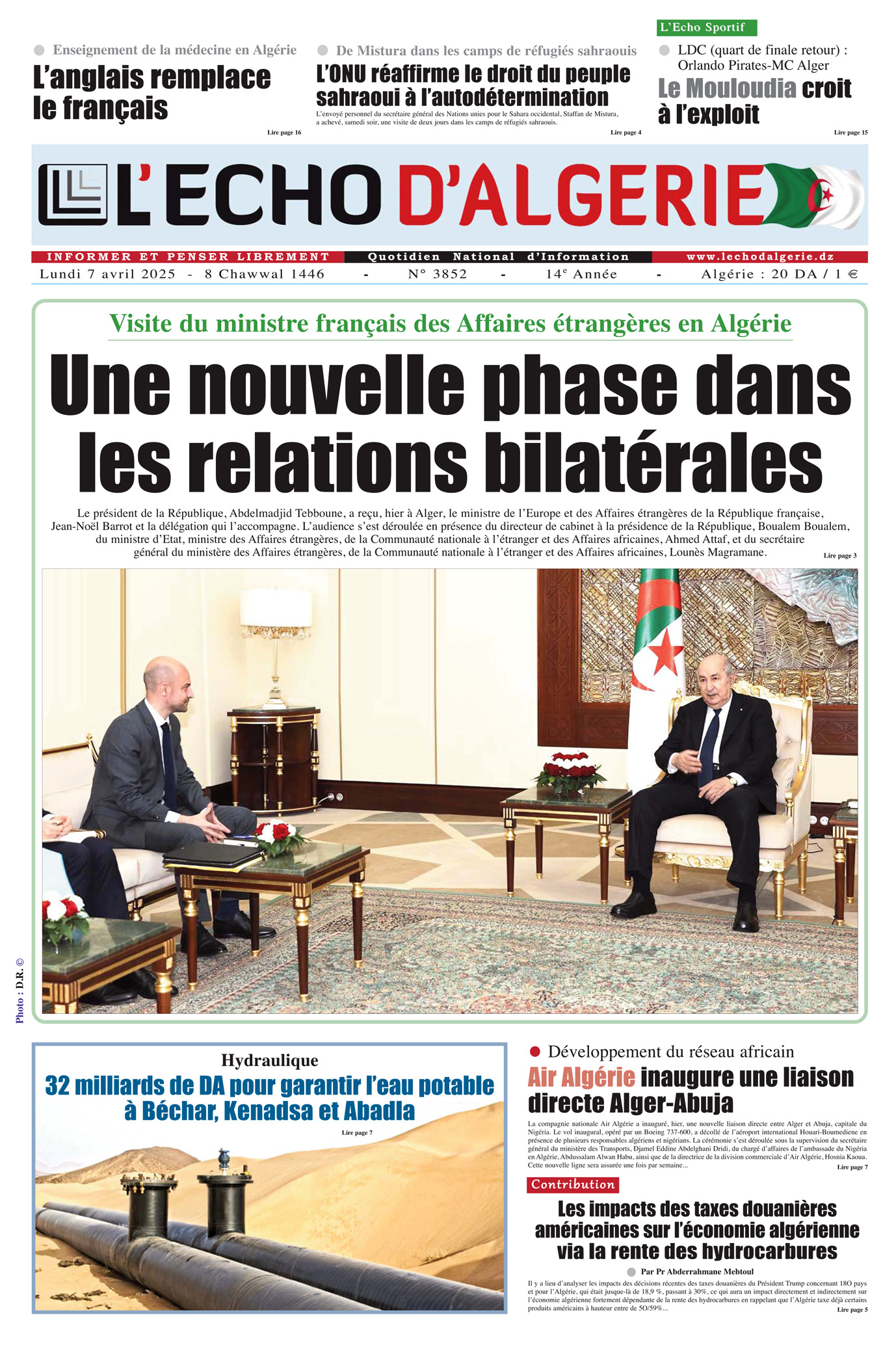 L’Echo d’Algérie, Quotidien National d’Information édité par Echo Médias Algérie Sarl, venu enrichir la presse écrite, jeune par son âge certes mais en réalité c’est le prolongement d’un idéal, d’un combat, d’un rêve.
