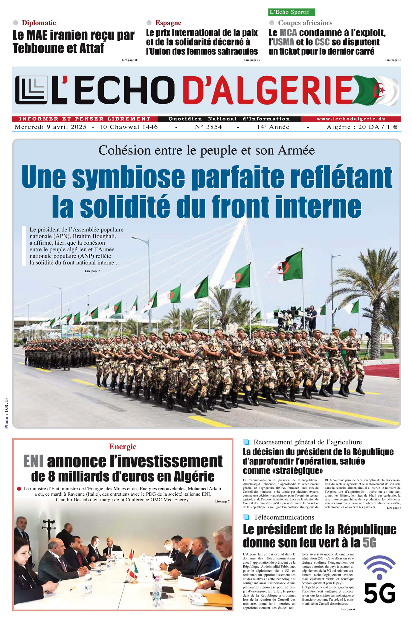 Accueil N 3854 du Mercredi 9 Avril 2025