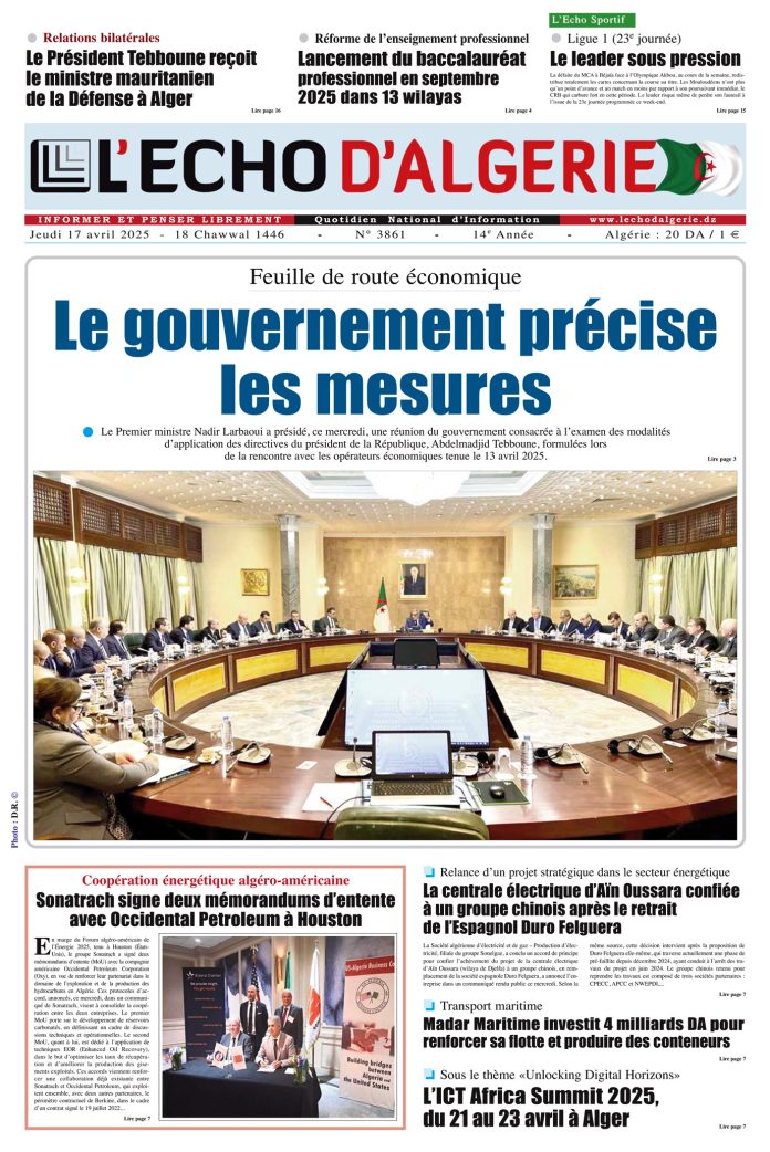 L’Echo d’Algérie, Quotidien National d’Information édité par Echo Médias Algérie Sarl, venu enrichir la presse écrite, jeune par son âge certes mais en réalité c’est le prolongement d’un idéal, d’un combat, d’un rêve.