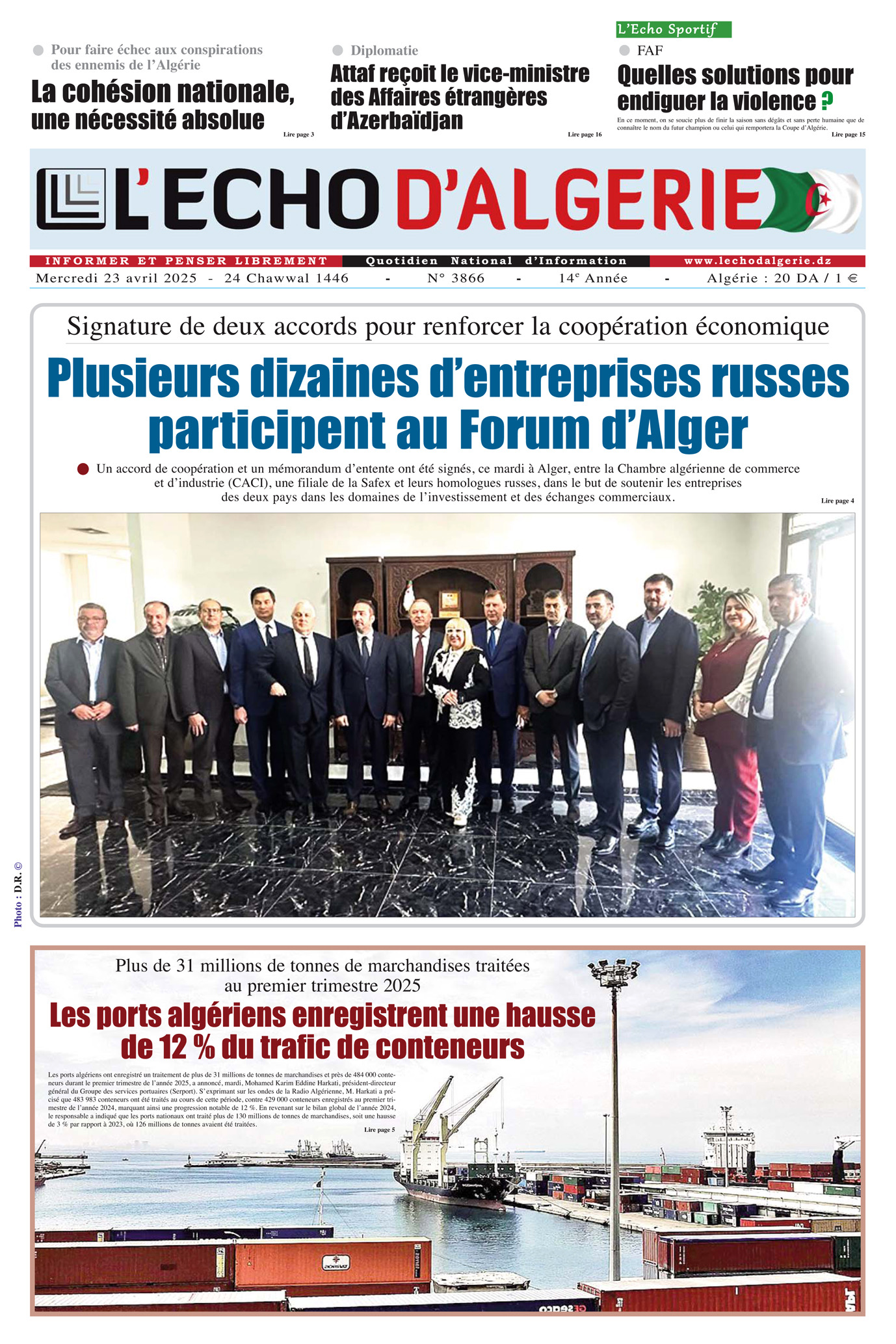 L’Echo d’Algérie, Quotidien National d’Information édité par Echo Médias Algérie Sarl, venu enrichir la presse écrite, jeune par son âge certes mais en réalité c’est le prolongement d’un idéal, d’un combat, d’un rêve.
