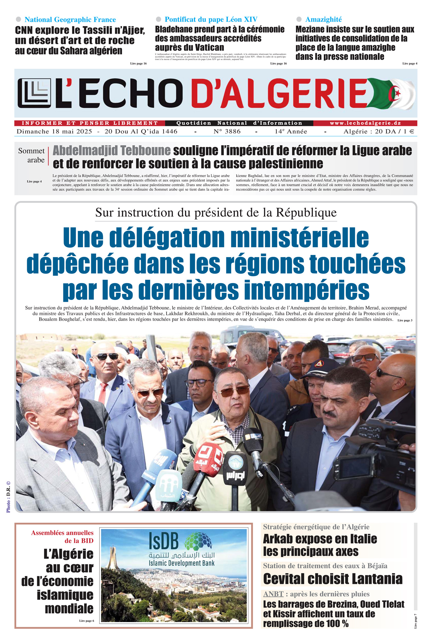 L’Echo d’Algérie, Quotidien National d’Information édité par Echo Médias Algérie Sarl, venu enrichir la presse écrite, jeune par son âge certes mais en réalité c’est le prolongement d’un idéal, d’un combat, d’un rêve.