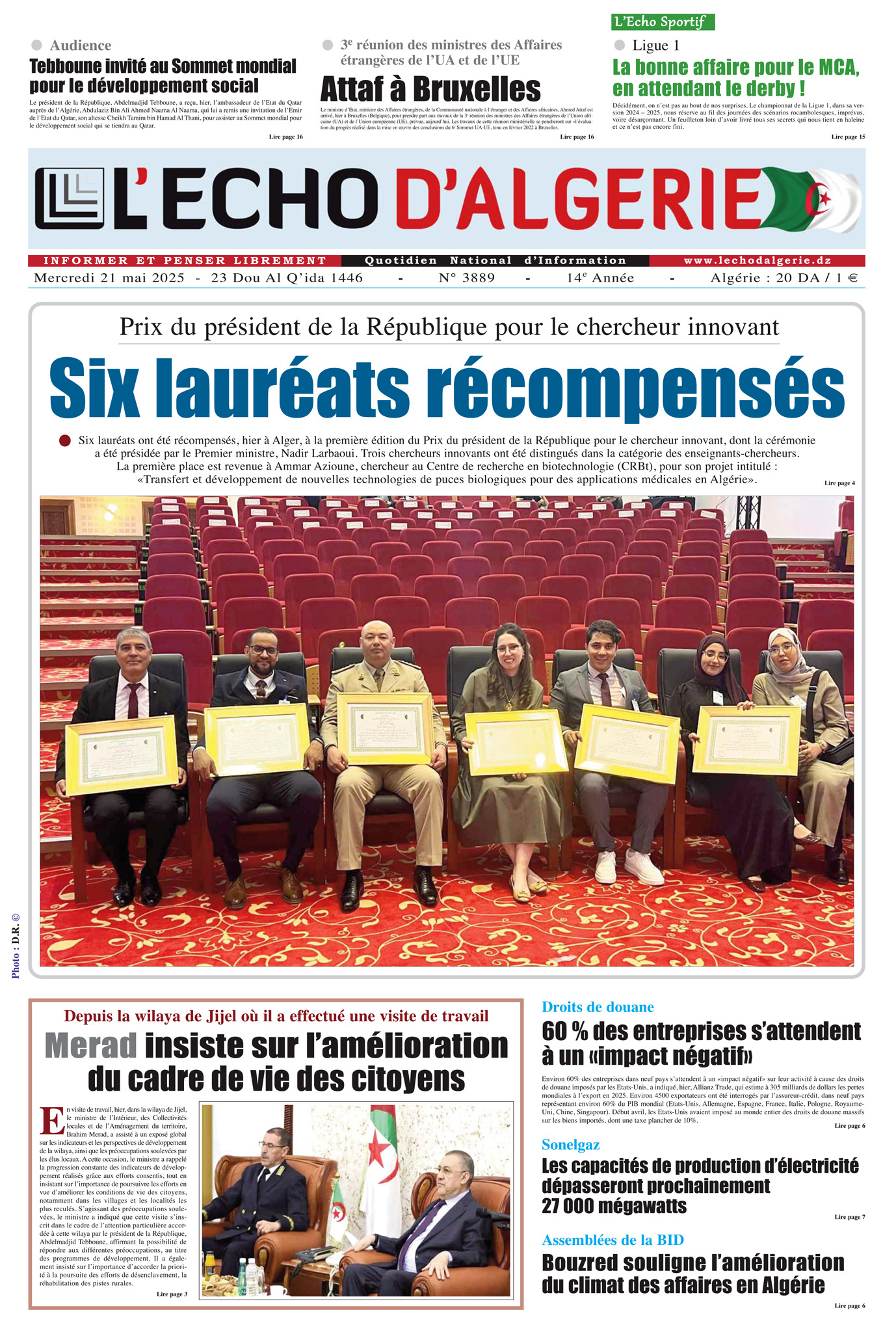 L’Echo d’Algérie, Quotidien National d’Information édité par Echo Médias Algérie Sarl, venu enrichir la presse écrite, jeune par son âge certes mais en réalité c’est le prolongement d’un idéal, d’un combat, d’un rêve.