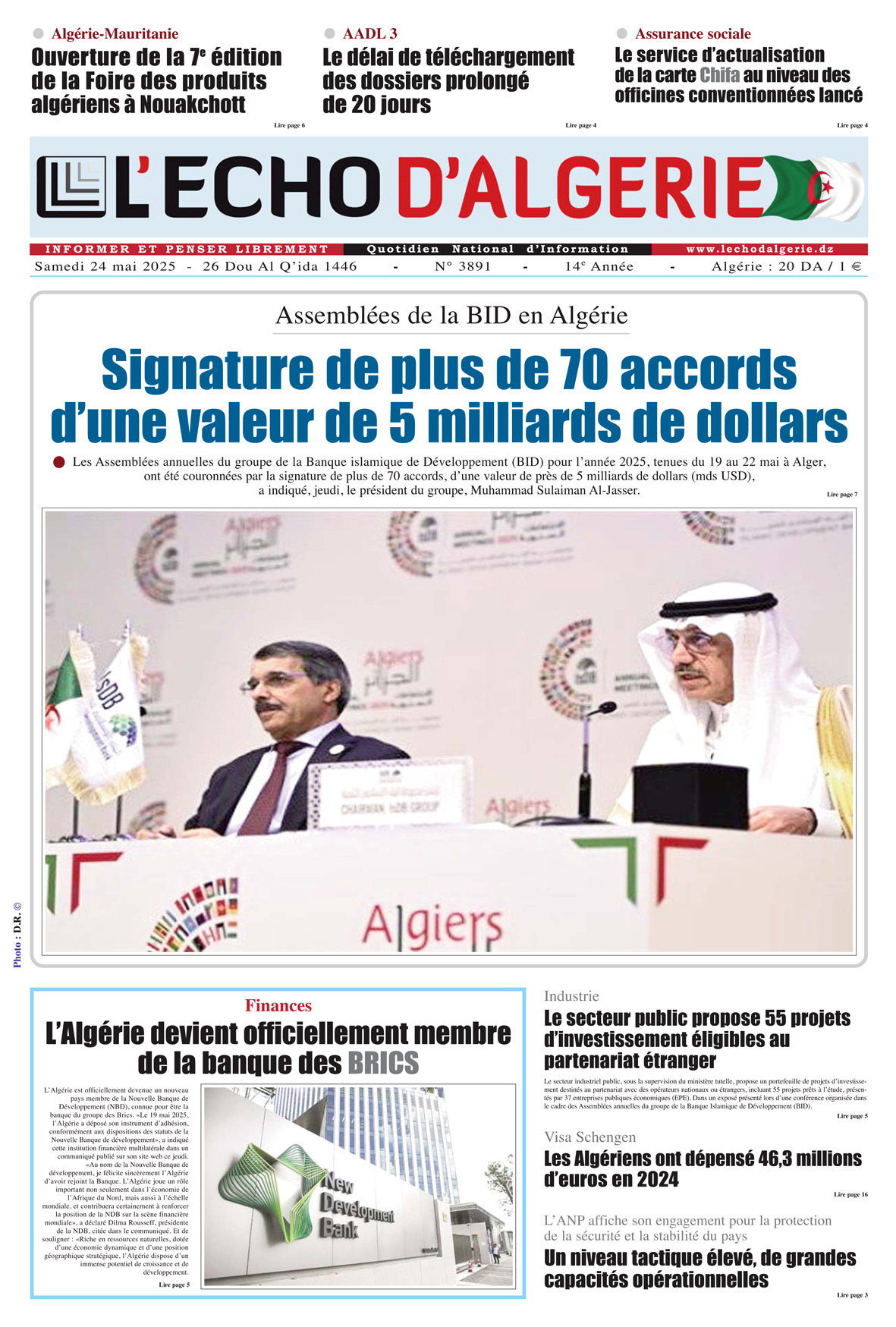 L’Echo d’Algérie, Quotidien National d’Information édité par Echo Médias Algérie Sarl, venu enrichir la presse écrite, jeune par son âge certes mais en réalité c’est le prolongement d’un idéal, d’un combat, d’un rêve.