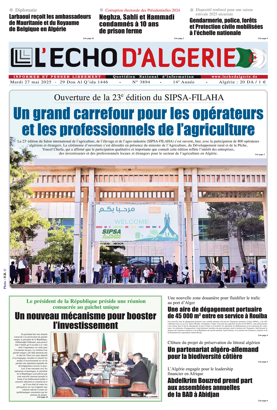 L’Echo d’Algérie, Quotidien National d’Information édité par Echo Médias Algérie Sarl, venu enrichir la presse écrite, jeune par son âge certes mais en réalité c’est le prolongement d’un idéal, d’un combat, d’un rêve.