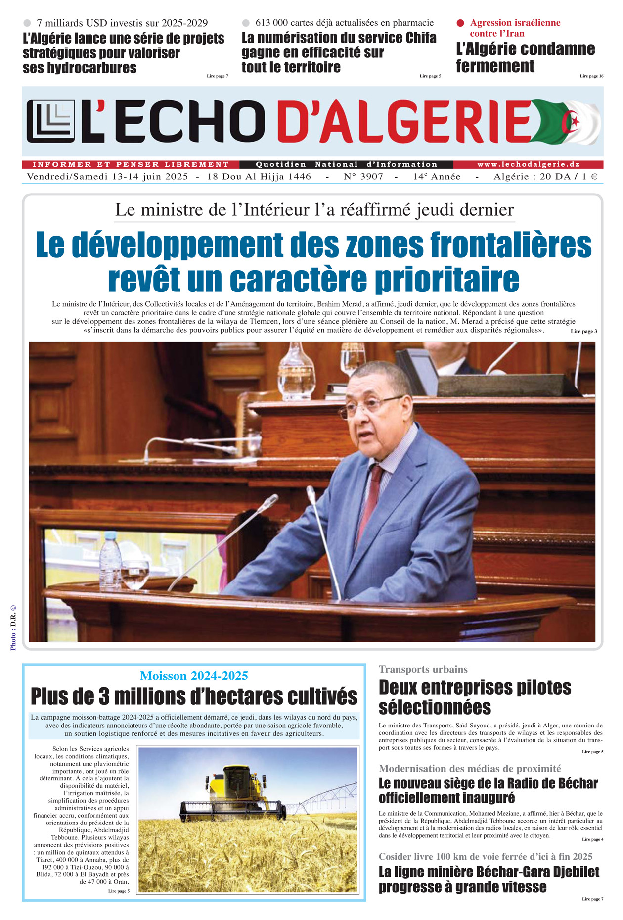 L’Echo d’Algérie, Quotidien National d’Information édité par Echo Médias Algérie Sarl, venu enrichir la presse écrite, jeune par son âge certes mais en réalité c’est le prolongement d’un idéal, d’un combat, d’un rêve.