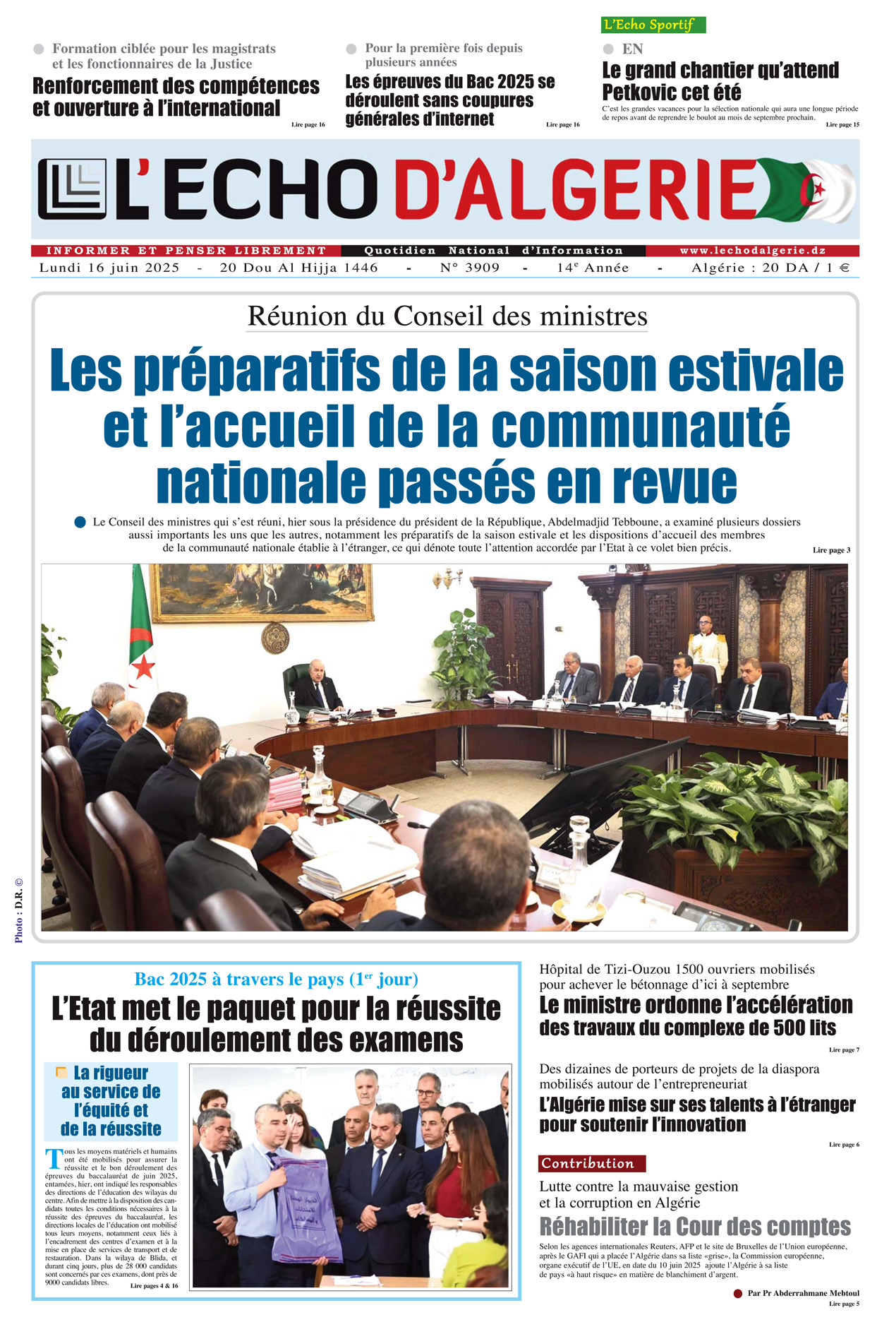 Accueil N 3909 du Lundi 16 Juin 2025
