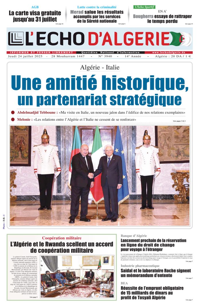 L’Echo d’Algérie, Quotidien National d’Information édité par Echo Médias Algérie Sarl, venu enrichir la presse écrite, jeune par son âge certes mais en réalité c’est le prolongement d’un idéal, d’un combat, d’un rêve.