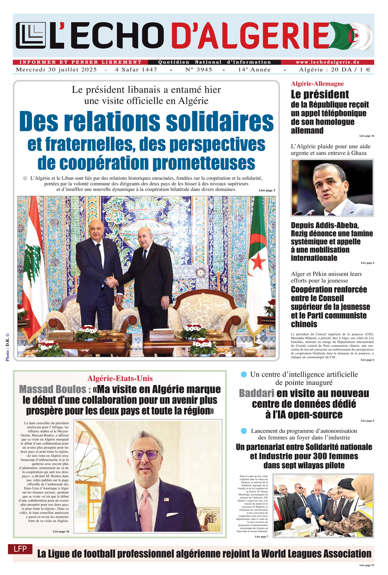 L’Echo d’Algérie, Quotidien National d’Information édité par Echo Médias Algérie Sarl, venu enrichir la presse écrite, jeune par son âge certes mais en réalité c’est le prolongement d’un idéal, d’un combat, d’un rêve.