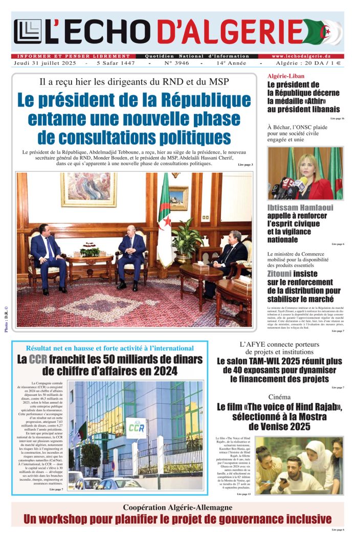 L’Echo d’Algérie, Quotidien National d’Information édité par Echo Médias Algérie Sarl, venu enrichir la presse écrite, jeune par son âge certes mais en réalité c’est le prolongement d’un idéal, d’un combat, d’un rêve.