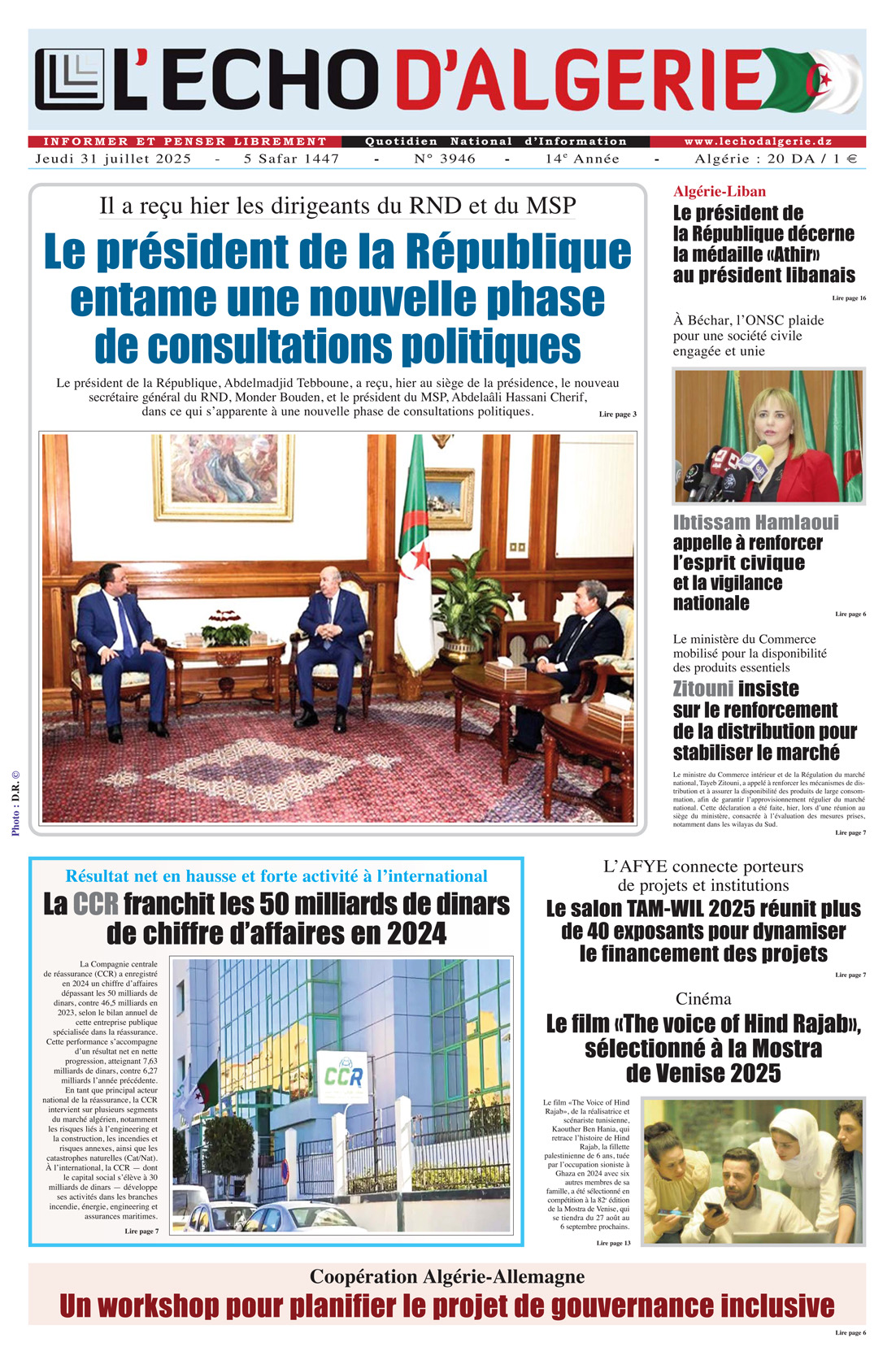 Accueil N° 3946 du Jeudi 31 Juillet 2025