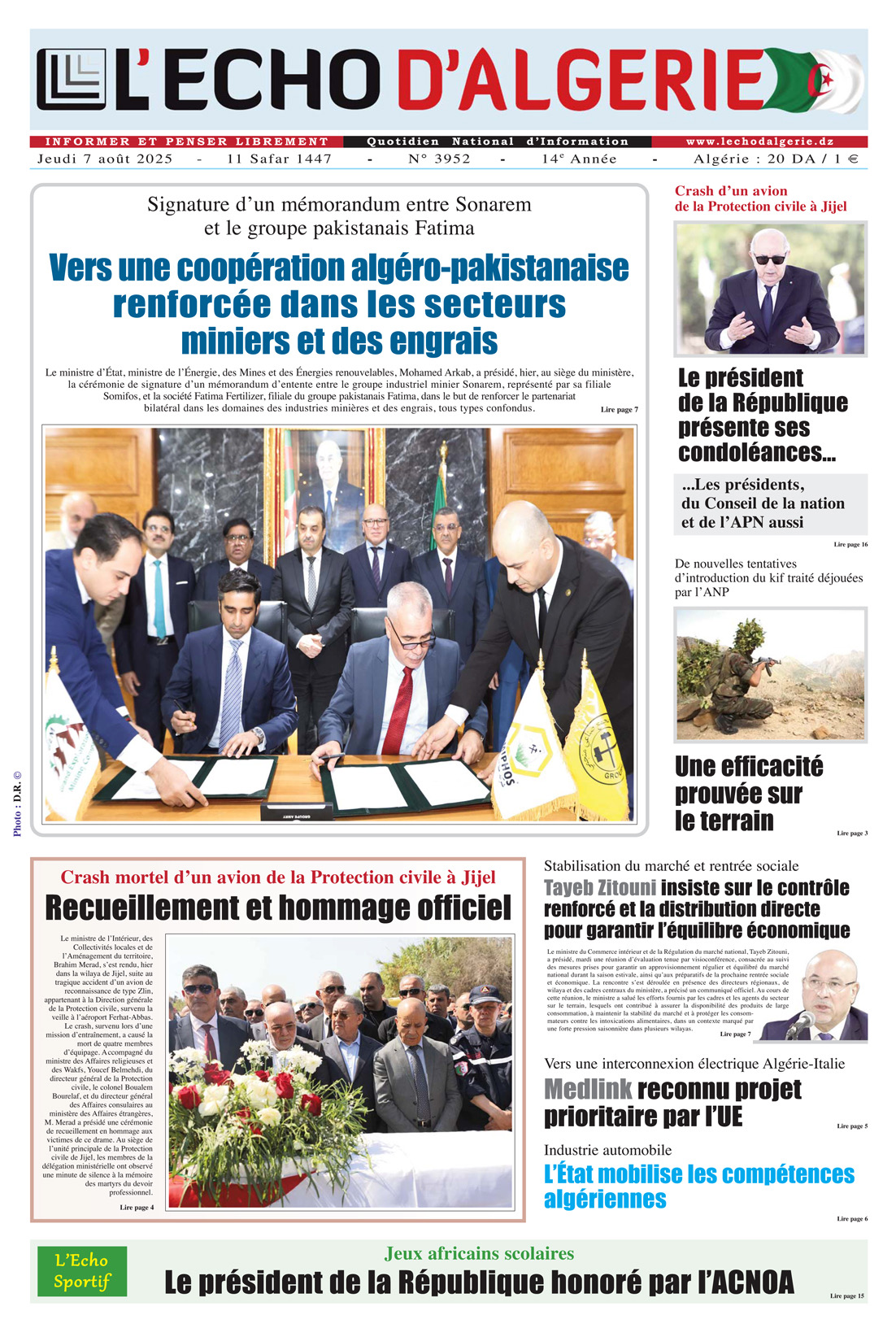 L’Echo d’Algérie, Quotidien National d’Information édité par Echo Médias Algérie Sarl, venu enrichir la presse écrite, jeune par son âge certes mais en réalité c’est le prolongement d’un idéal, d’un combat, d’un rêve.