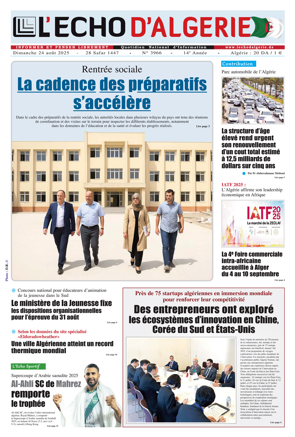 L’Echo d’Algérie, Quotidien National d’Information édité par Echo Médias Algérie Sarl, venu enrichir la presse écrite, jeune par son âge certes mais en réalité c’est le prolongement d’un idéal, d’un combat, d’un rêve.