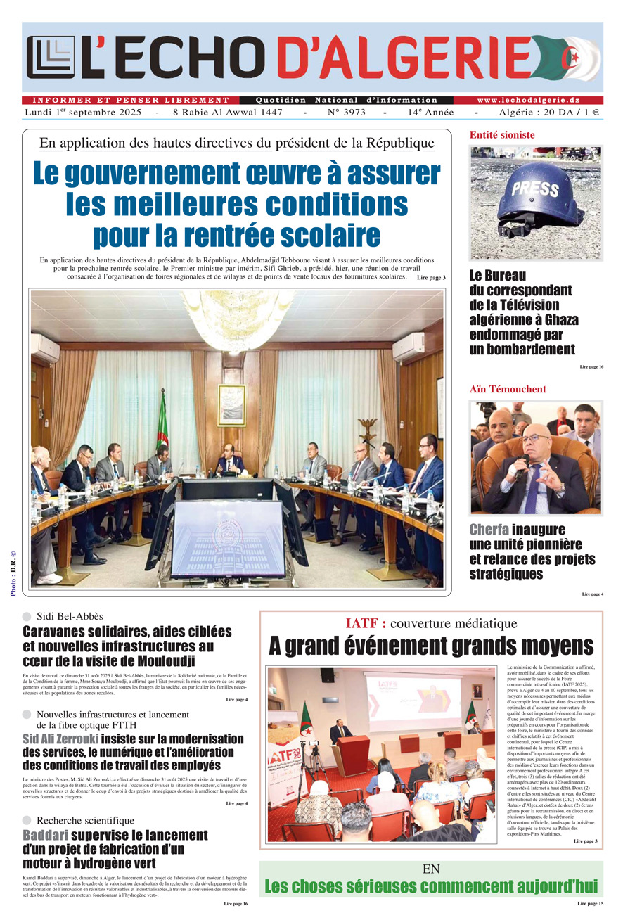 L’Echo d’Algérie, Quotidien National d’Information édité par Echo Médias Algérie Sarl, venu enrichir la presse écrite, jeune par son âge certes mais en réalité c’est le prolongement d’un idéal, d’un combat, d’un rêve.