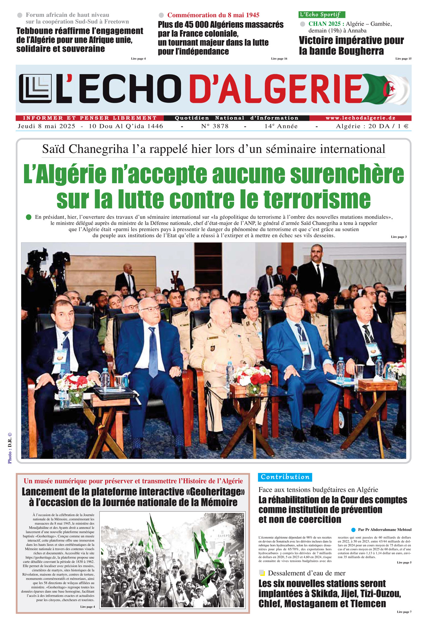 L’Echo d’Algérie, Quotidien National d’Information édité par Echo Médias Algérie Sarl, venu enrichir la presse écrite, jeune par son âge certes mais en réalité c’est le prolongement d’un idéal, d’un combat, d’un rêve.