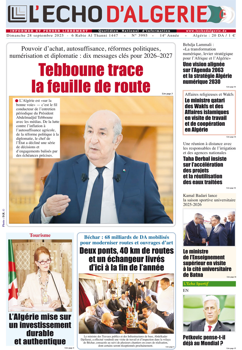 L’Echo d’Algérie, Quotidien National d’Information édité par Echo Médias Algérie Sarl, venu enrichir la presse écrite, jeune par son âge certes mais en réalité c’est le prolongement d’un idéal, d’un combat, d’un rêve.