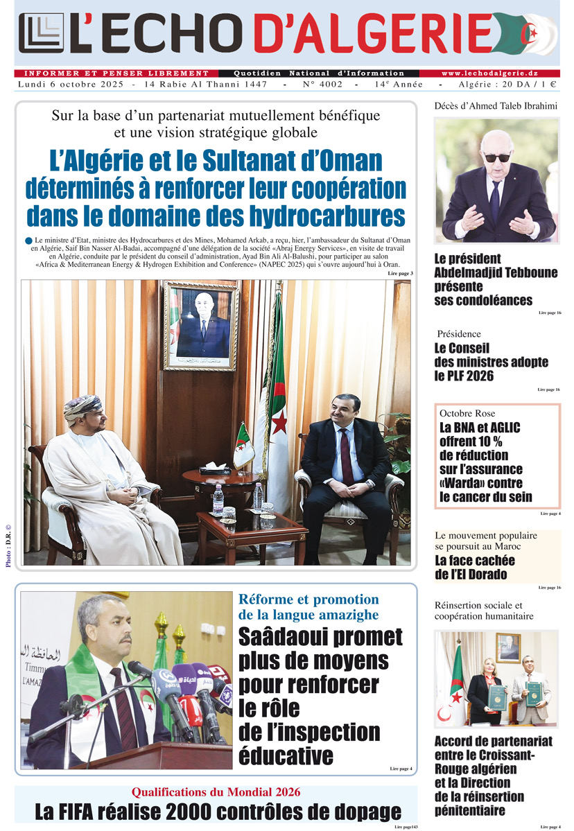 L’Echo d’Algérie, Quotidien National d’Information édité par Echo Médias Algérie Sarl, venu enrichir la presse écrite, jeune par son âge certes mais en réalité c’est le prolongement d’un idéal, d’un combat, d’un rêve.