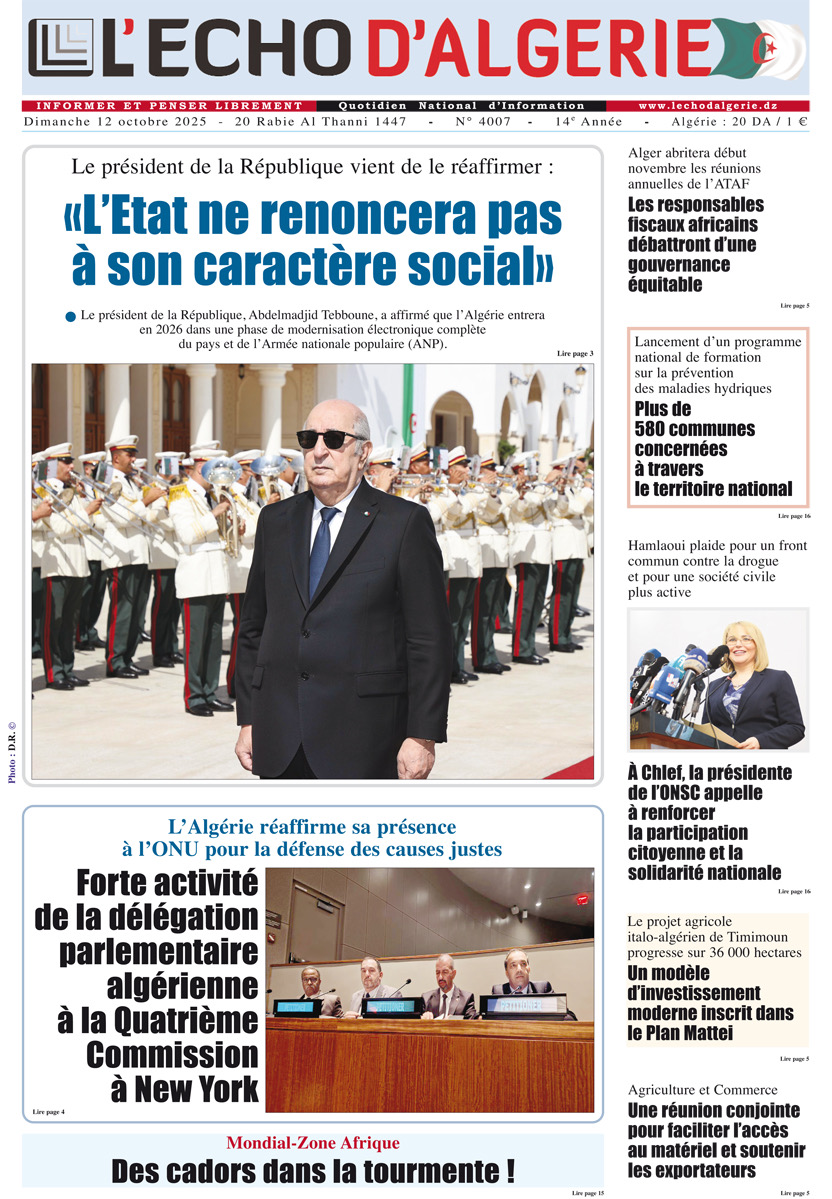 L’Echo d’Algérie, Quotidien National d’Information édité par Echo Médias Algérie Sarl, venu enrichir la presse écrite, jeune par son âge certes mais en réalité c’est le prolongement d’un idéal, d’un combat, d’un rêve.
