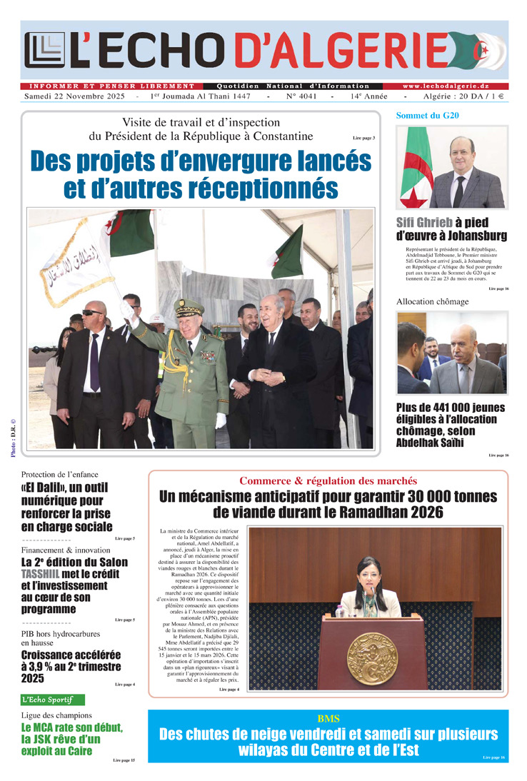 L’Echo d’Algérie, Quotidien National d’Information édité par Echo Médias Algérie Sarl, venu enrichir la presse écrite, jeune par son âge certes mais en réalité c’est le prolongement d’un idéal, d’un combat, d’un rêve.