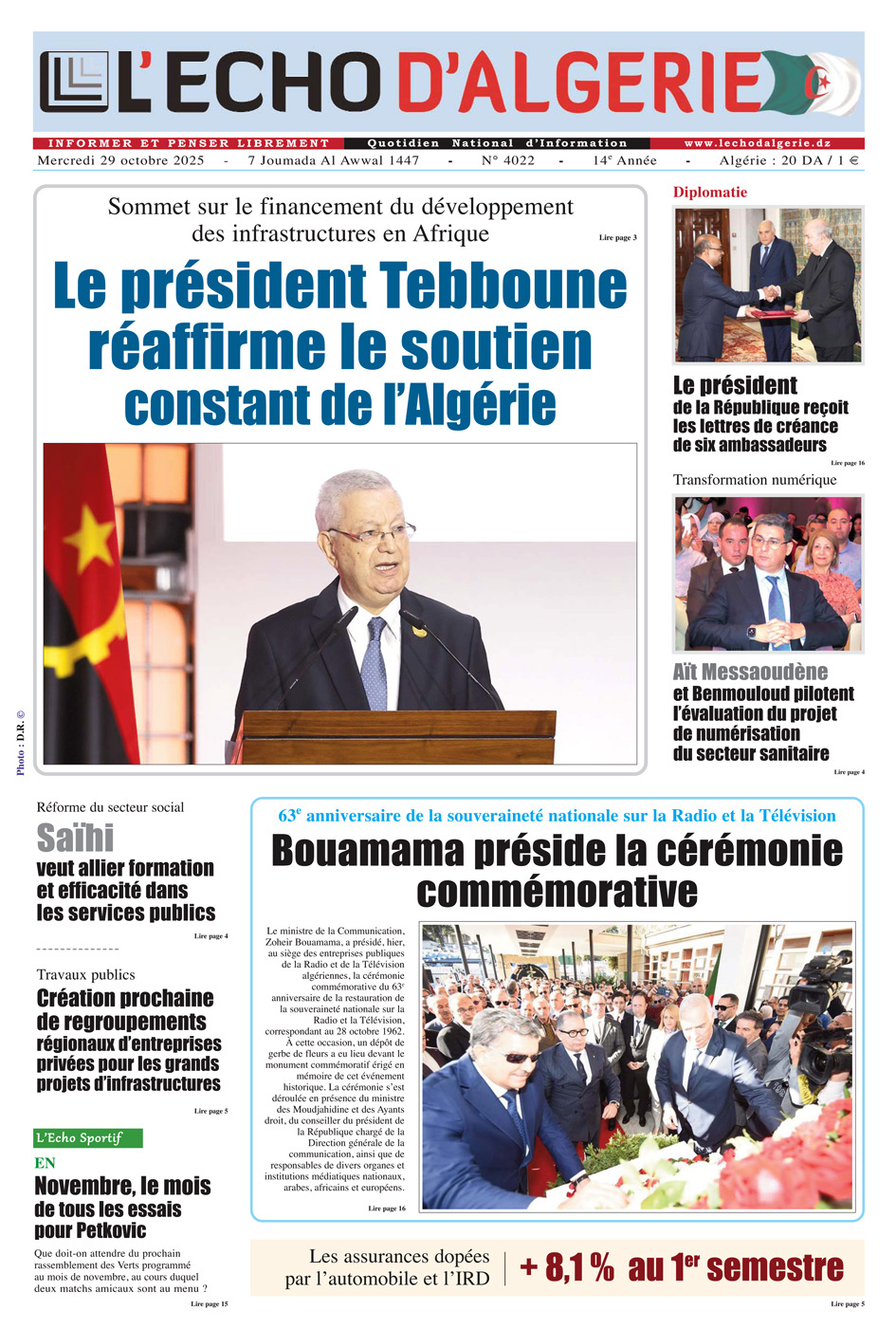 L’Echo d’Algérie, Quotidien National d’Information édité par Echo Médias Algérie Sarl, venu enrichir la presse écrite, jeune par son âge certes mais en réalité c’est le prolongement d’un idéal, d’un combat, d’un rêve.