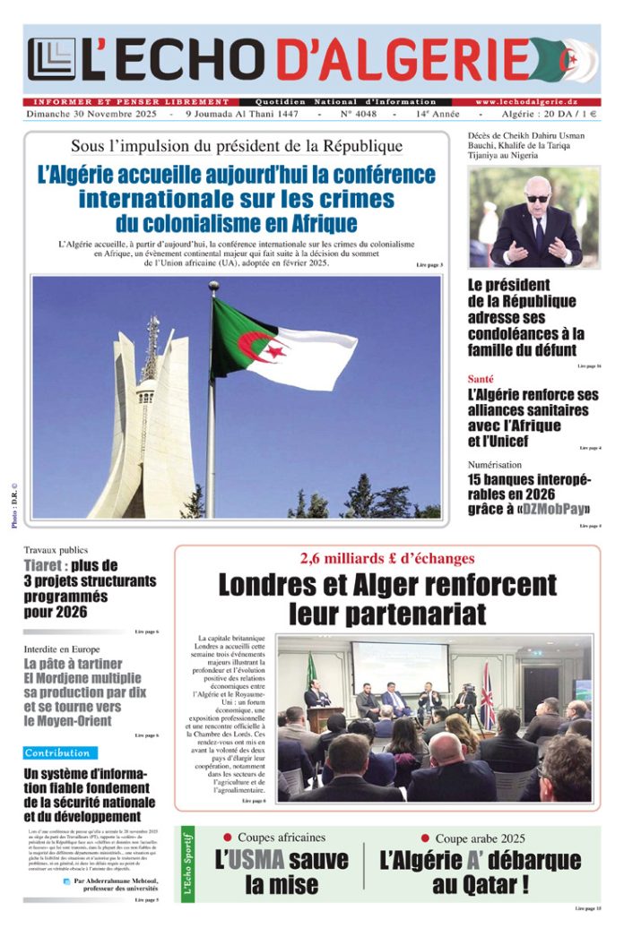 L’Echo d’Algérie, Quotidien National d’Information édité par Echo Médias Algérie Sarl, venu enrichir la presse écrite, jeune par son âge certes mais en réalité c’est le prolongement d’un idéal, d’un combat, d’un rêve.