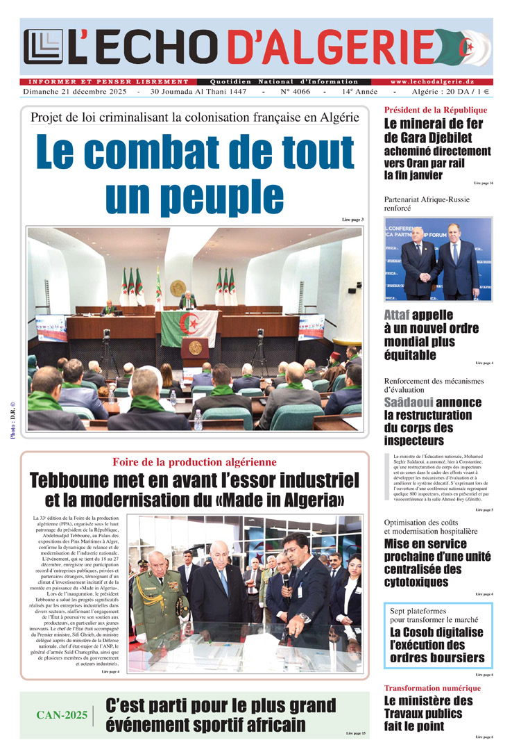 L’Echo d’Algérie, Quotidien National d’Information édité par Echo Médias Algérie Sarl, venu enrichir la presse écrite, jeune par son âge certes mais en réalité c’est le prolongement d’un idéal, d’un combat, d’un rêve.