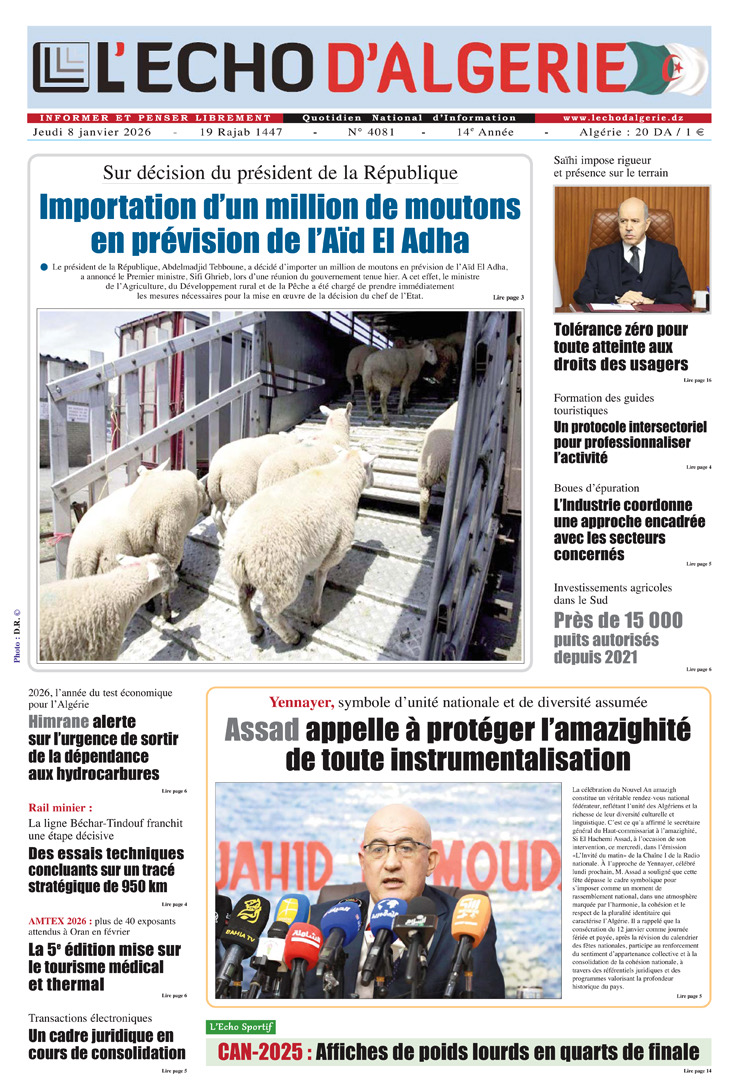 L’Echo d’Algérie, Quotidien National d’Information édité par Echo Médias Algérie Sarl, venu enrichir la presse écrite, jeune par son âge certes mais en réalité c’est le prolongement d’un idéal, d’un combat, d’un rêve.