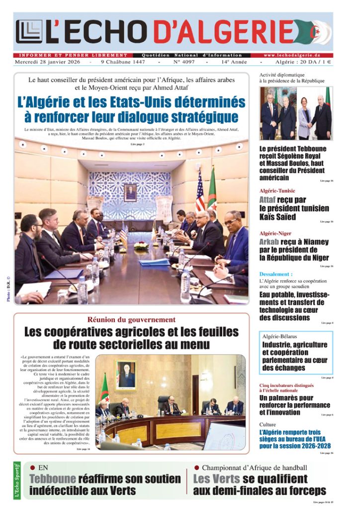L’Echo d’Algérie, Quotidien National d’Information édité par Echo Médias Algérie Sarl, venu enrichir la presse écrite, jeune par son âge certes mais en réalité c’est le prolongement d’un idéal, d’un combat, d’un rêve.