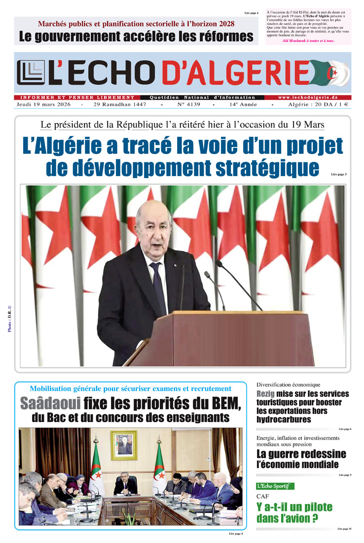 L’Echo d’Algérie, Quotidien National d’Information édité par Echo Médias Algérie Sarl, venu enrichir la presse écrite, jeune par son âge certes mais en réalité c’est le prolongement d’un idéal, d’un combat, d’un rêve.